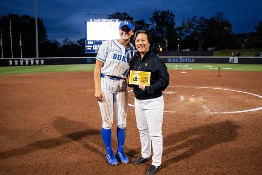 Last season, she set a number of Duke softball records, including smashing two grand slams in one game and knocking in 8 runs in a single game. She