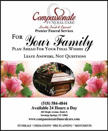 NY, followed by a 2:30 pm celebration of life, open to all at Mama Mia’s Restaurant 185 Ballston Ave, Saratoga Springs, NY Online remembrances can be made at www. burkefuneralhome.com