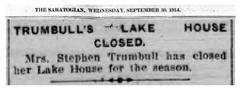 Mr. Trumbull was something of a sensation for his talent in reconditioning of injured race horses, and developed a reputation for accomplishment along these lines for his treatments. An incident of this type is detailed in a February 10, 1932 Saratogian article many years after the actual event took place,