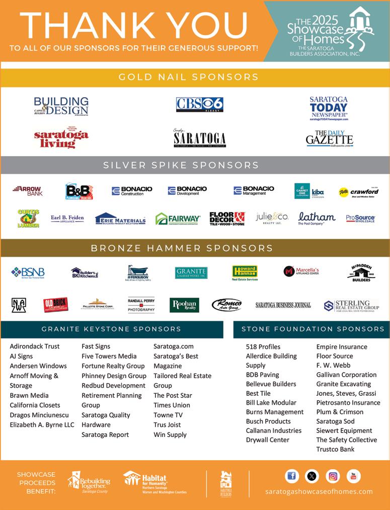 Best of all, the proceeds from this event go back into our community. The Saratoga Builders Association has now contributed over $1.6 MILLION DOLLARS to our local charities from this community event, and this year will be no different. Proceeds from this year’s Showcase of Homes will benefit two local organizations: Rebuilding Together Saratoga County and Habitat for Humanity of Northern Saratoga, Warren, and Washington Counties. Both these groups help give back to the community through improving the homes and lives of those in need.