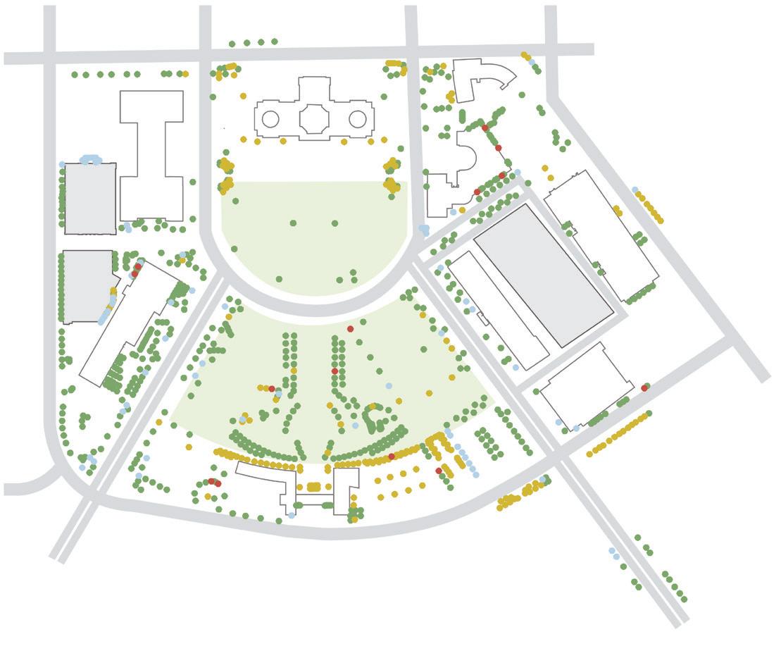 The Capitol Mall spans XX acres and focuses on the Upper and Lower Malls, which hold the Capitol Building, Veterans Services Building, and most commemorative works. It is bounded by University Avenue; Rev. Dr. Martin Luther King, Jr. Boulevard; John Ireland Boulevard; West 12th Street and Cedar Street. It is at this scale that the Design Framework can best address landscape typologies and planting strategies; pedestrian networks and ADA accessibility; public realm design; security implications; lighting; and more.