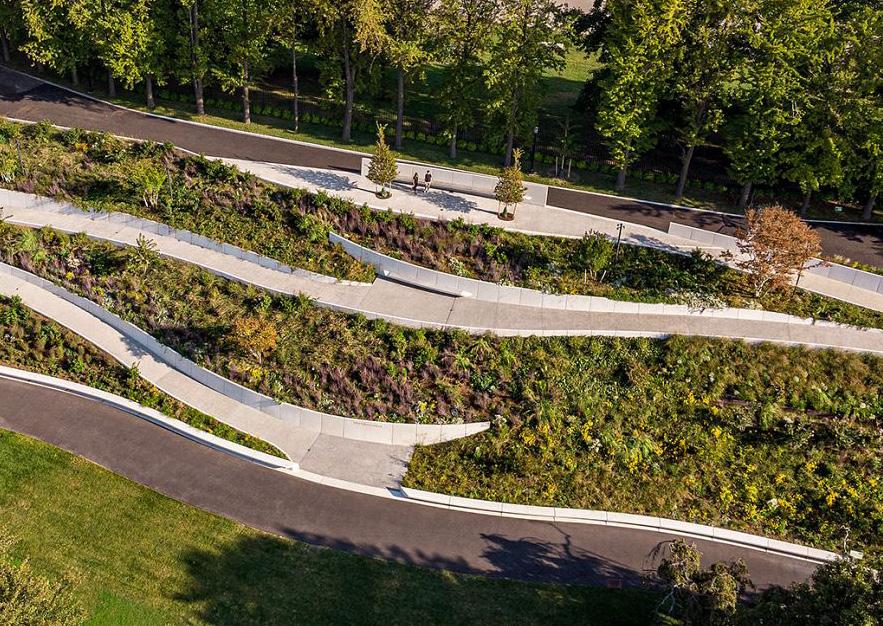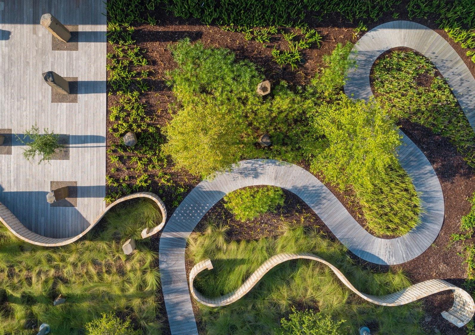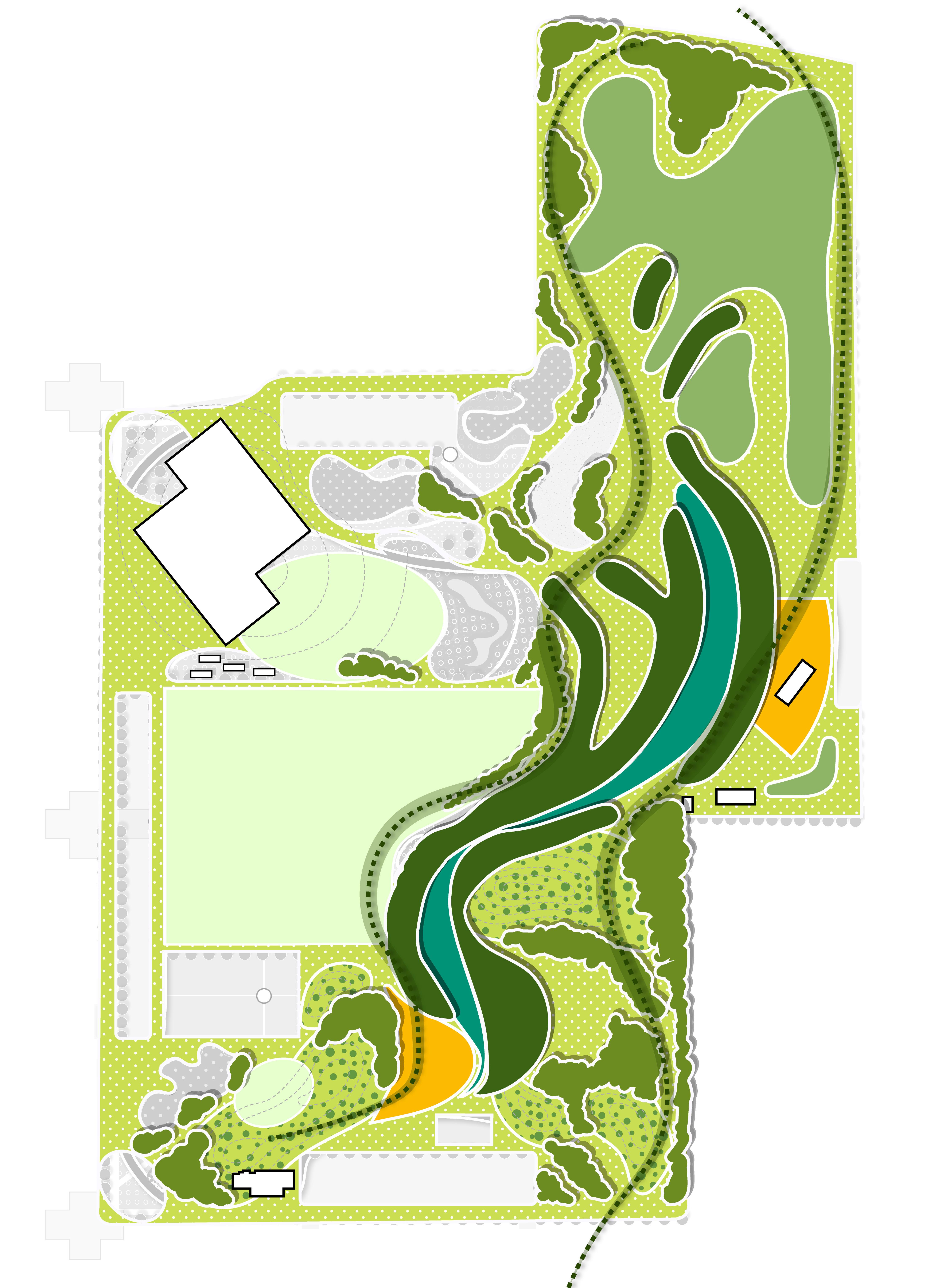Las experiencias de programación pasiva están ubicadas en el lado este del parque, creando experiencias tranquilas y contemplativas.