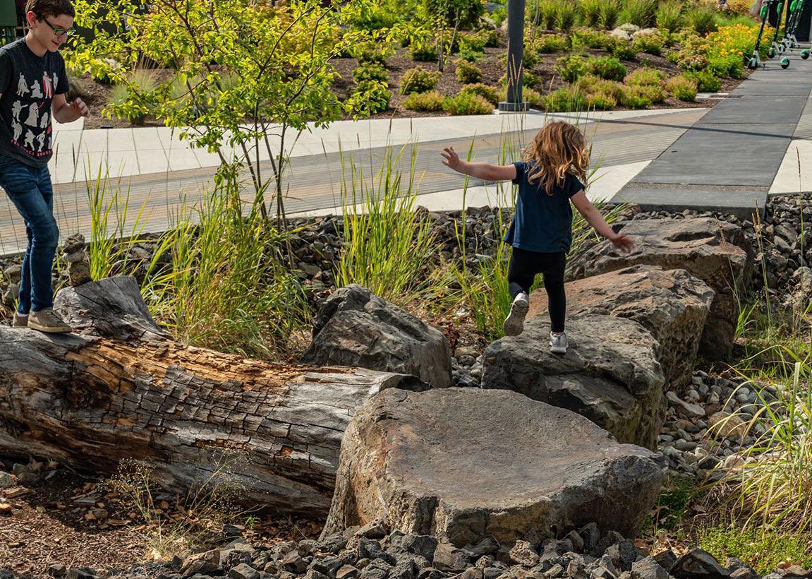 La captura y limpieza de aguas de lluvia para convertirlas en un aspecto educativo y experiencial del sitio es un elemento clave del proyecto.
