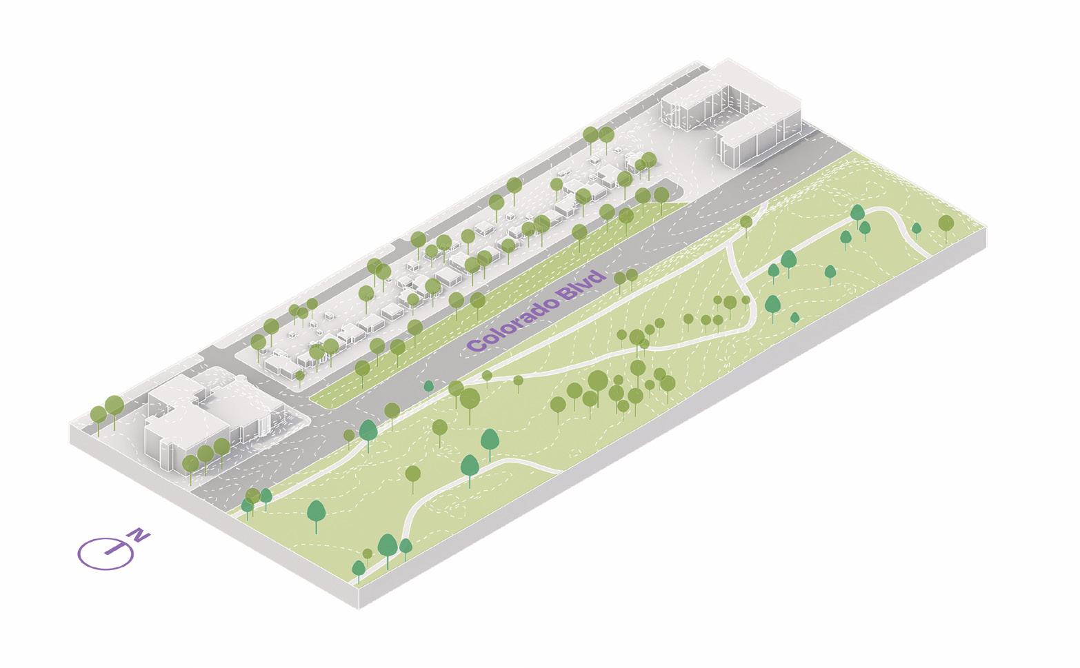La programación activa se encuentra a lo largo del borde del parque de Colorado Blvd.