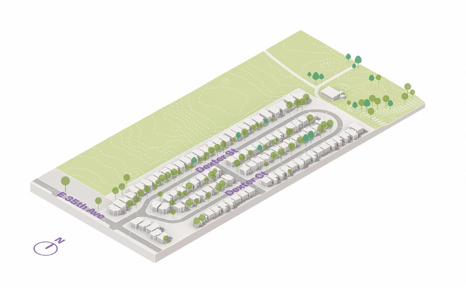 El borrador del proyecto equilibra los espacios abiertos y las actividades activas del parque. Los visitantes pueden sumergirse en la naturaleza que se extiende por todo el parque, con puntos de observación y juegos en la naturaleza. Las áreas de mayor actividad del parque incluyen espacios para deportes tradicionales organizados, deportes alternativos y una experiencia acuática. Un lecho de arroyo serpenteante en el centro manejará las aguas de lluvia, a la vez que creará interés visual, educación y oportunidades para el desarrollo ecológico. Las esquinas del parque son más activas, con un pabellón deportivo, un área de juegos infantiles y áreas de aventura al aire libre cerca de Colorado Blvd y 40th Ave. Amplios campos deportivos y canchas deportivas a lo largo de Colorado Blvd ofrecen lugares para practicar diversos deportes. Se prevé un centro cultural para la reunión comunitaria alrededor de la casa club existente. Servicios como baños, pabellones para picnic y estructuras de observación se encuentran por todo el parque. Todo el parque está conectado por un amplio circuito multiusos y un sistema de senderos para facilitar el acceso.