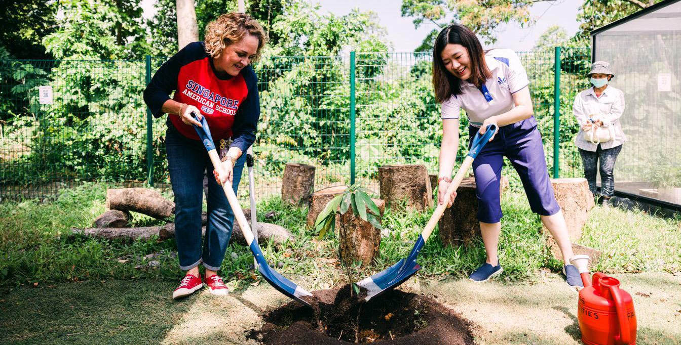 SAS continues to build a culture centered around sustainability and wellness. Sustainability is integrated into the curriculum and daily practices. A few years ago, early learning center students began a research project and learned about recycling in Singapore. After collecting over 200 plastic forks and spoons in just three weeks, students demonstrated empathy for the natural world. They prepared a persuasive presentation for Mr. Tan who runs the high school cafeteria and convinced him to offer metal forks and spoons to the children in the early learning center and spread the word to other parts of the school.
