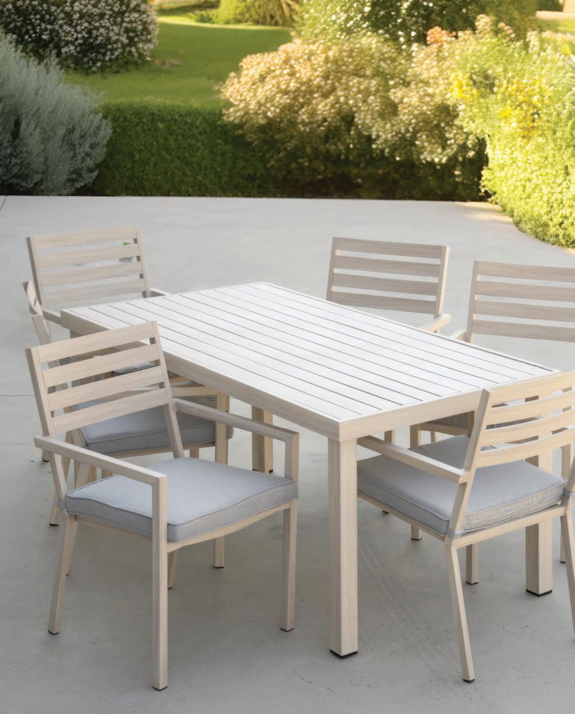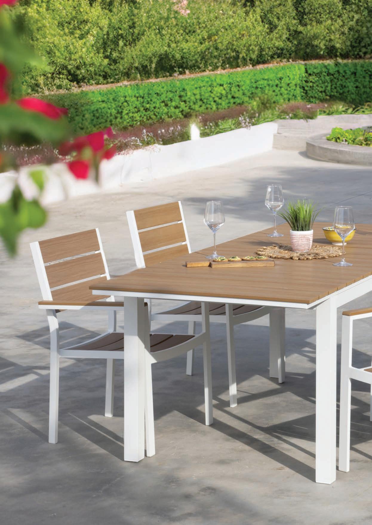Tavolo da esterno a doghe, bianco e natural, Amalfi