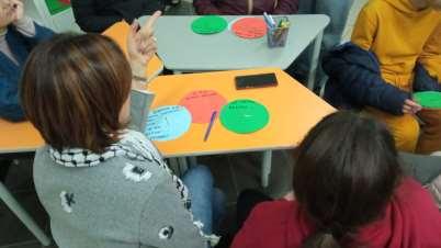 I bambini, lanciando un gomitolo di lana, propongono agli adulti presenti di creare una vera e propria rete di relazioni e conoscenza per poter riflettere bene su quali sono gli aspetti positivi e felici e quelli da migliorare nell’ambiente familiare e scolastico.
