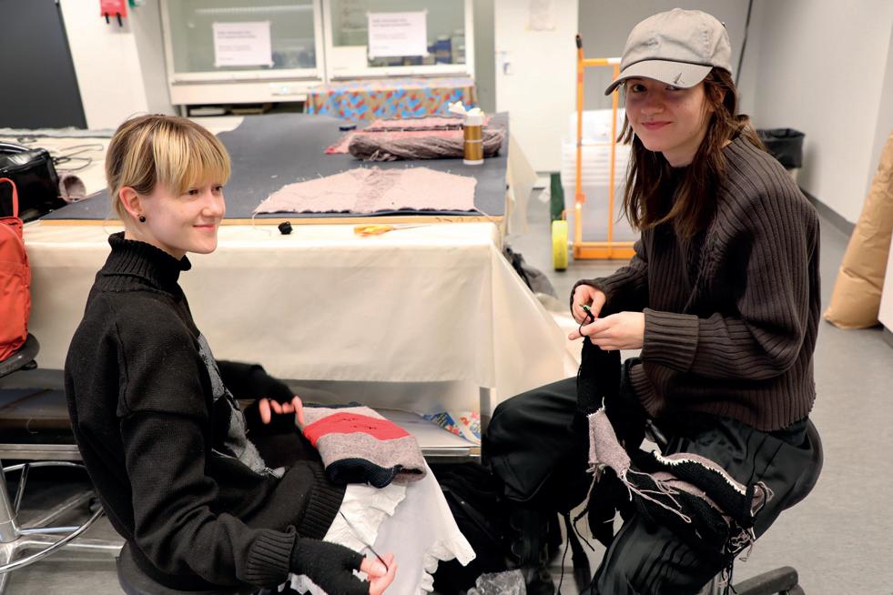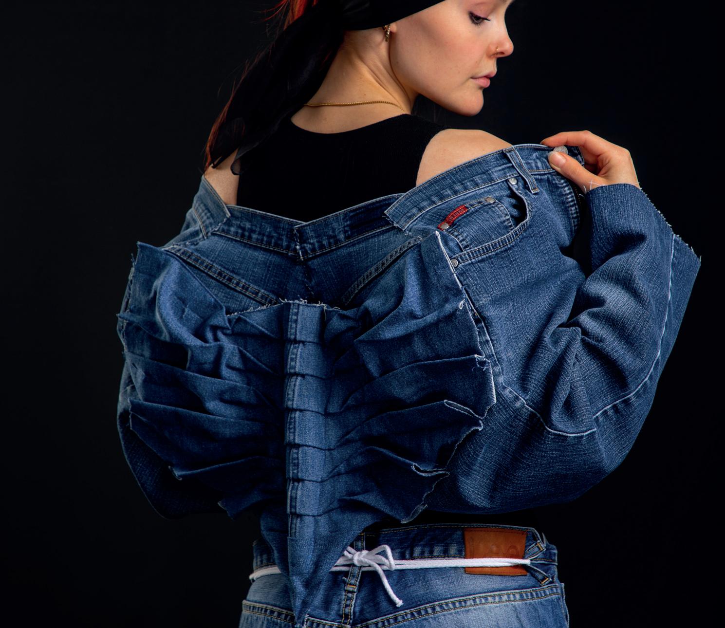 Yksi teosten suunnieluun osallistuneista opiskelijoista on Vera Huunen. Muotiin ja vaatesuunnieluun erikoistunut toisen vuoden opiskelija suunnieli ja toteutti vastuullisen muodin kurssilla kierrätysfarkusta farkkuasun, joka nähdään myös Sauma-näyelyssä.