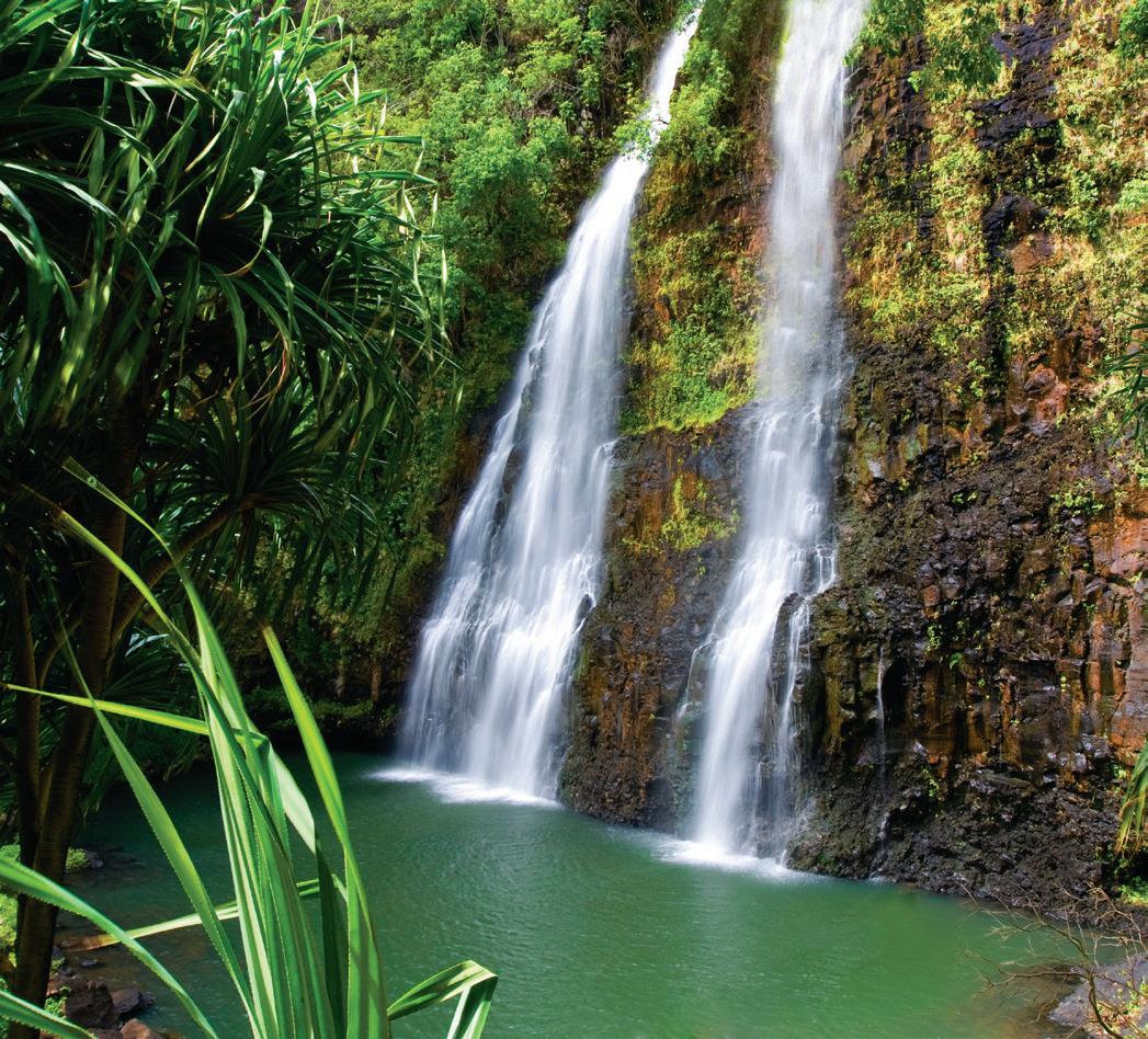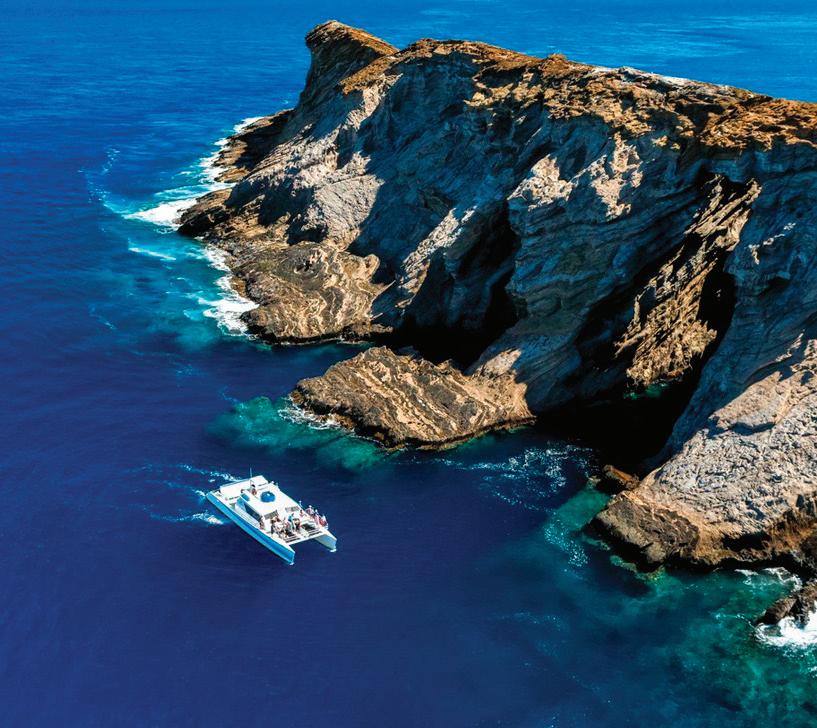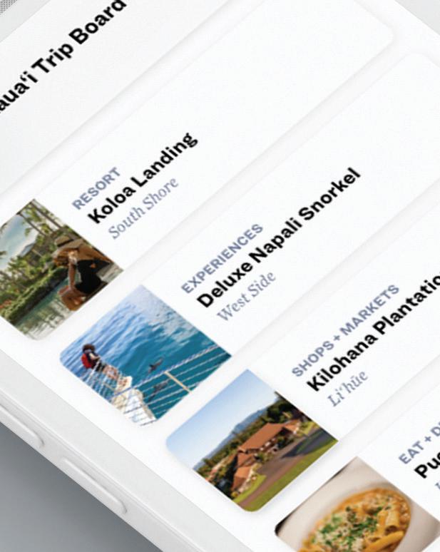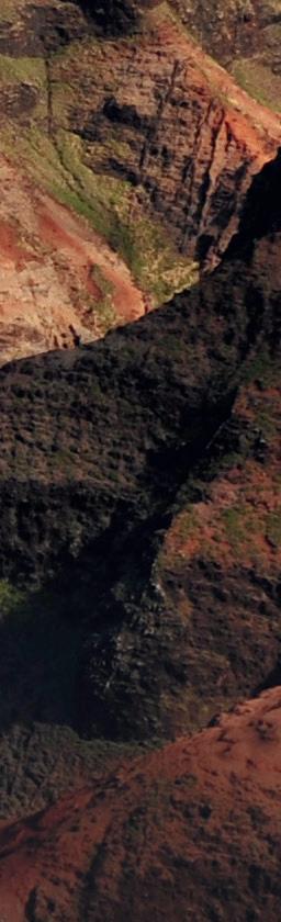 rest of the island and exclusively viewed by foot, boat or air. A rural atmosphere makes Kaua‘i the Shangri-La of outdoor adventures. Hike through misty rainforests of Kōke‘e State Park, into the dusty red gorge of Waimea Canyon or along the ragged coastline of Māhā’ulepū. Rent a kayak or stand up paddleboard and coast along the Hanalei or Wailua rivers that are fed by Mount Wai‘ale‘ale, one of the wettest spots on earth that averages more than 400 inches of rain each year. Swim at celebrated beaches, such as Hanalei Bay, set against the mighty Namolokama Mountain, or the perpetually sunny South Shore’s familyfriendly, Po‘ipū Beach.