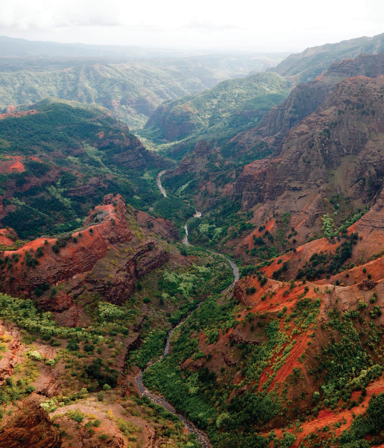 A rural atmosphere makes Kaua‘i the Shangri-La of outdoor adventures. Hike through misty rainforests of Kōke‘e State Park, into the dusty red gorge of Waimea Canyon or along the ragged coastline of Māhā’ulepū. Rent a kayak or stand-up paddleboard and coast along the Hanalei or Wailua rivers that are fed by Mount Wai‘ale‘ale, one of the wettest spots on earth that averages more than 400 inches of rain each year. Swim at celebrated beaches, such as Hanalei Bay, set against the mighty Namolokama Mountain, or the perpetually sunny South Shore’s family-friendly, Po‘ipū Beach. Kaua‘i’s quiet characteristics are also ideal for relaxation. Full service resorts around the island provide so many amenities and comforts that guests don’t have to leave in order to enjoy the island’s rehabilitating attributes. While weather is ideal yearround, keep in mind that rain is more consistent during the winter season when tides also pick up on the North Shore, whereas the summer is hotter and surf kicks into higher gear on the South Shore.