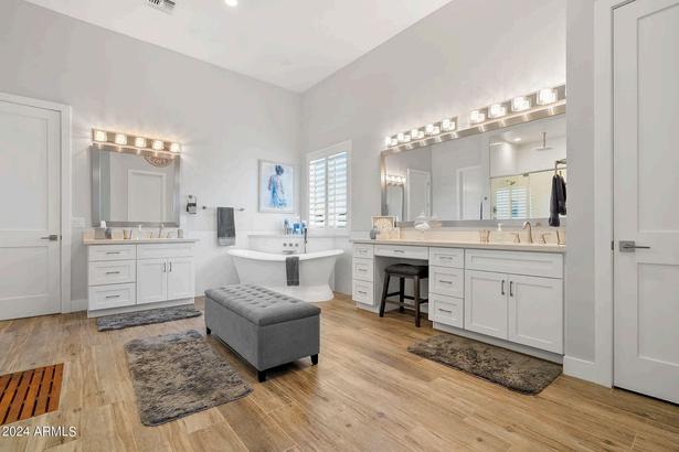 The great room is masterfully built with movable glass walls on two opposing sides, creating a magical open concept where front courtyard, great room, & back courtyard converge effortlessly into one breathless vision. French Country wide plank flooring throughout brings warmth & charm. Incredible chef's kitchen offers requisite (MORE) appliances (Wolf & Sub Zero), 2 dishwashers & one of the largest most fabulous kitchen islands imaginable. In addition to the great room which offers multiple entertaining/dining areas, there is perfection in the master suite, a family room/game room/playroom, office (with ensuite), & 2 secondary bedrooms (both ensuites). No interior steps. Backyard offers stunning pool with sun shelf, mountain views, privacy, & artificial grass for easy maintenance. Perfectly located within Scottsdale's most desirable zip code of 85255, White Horse is 3 minutes to the Marketplace at DC Ranch (a lovely retail/dining/shopping experience), 3 minutes to AJs/CVS/Starbucks, 5 minutes to the 101 Freeway, 10 minutes to Scottsdale Quarter.