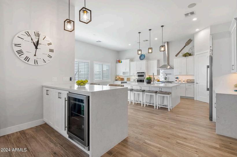 Welcome to Sonoran Ridge Estates in the heart of the Arizona Desert This custom home, built in 2022, sits on a lot that is over 35,000 sq ft The home is conventiently located 4 8 miles to the Loop 303 & 7 miles to the newly developed Village at Prasada Your dream home features 4 bedrooms with 3.5 baths, including one en-suite, & Jack and Jill set up, There's ample space for family and guest. The kitchen is a chef's dream come true, featuring a beautiful island, custom cabinets and GE Monogram appliances, a built in Refrigerator and Pot Filler for ease of creating your gourmet dinner Golfers will love their private puting green and your fur baby will enjoy their very own enclosed custom dog run