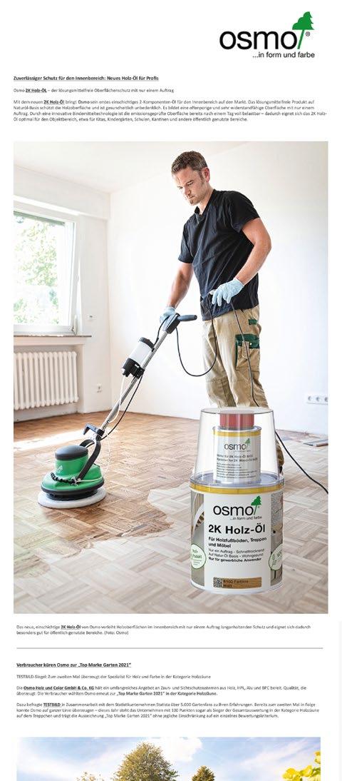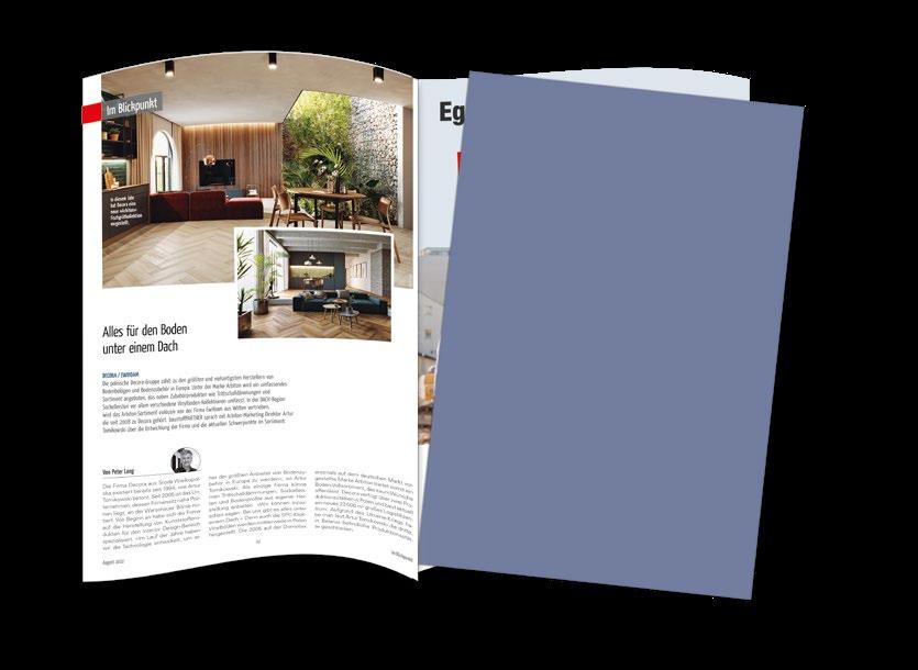 2022 DAS FACHMAGAZIN FÜR DAS BAUHANDWERK BAUSTOFF-PARTNER.DE MEISTERWERKE Alltagstauglich & ressourcenschonend 08 TOP-THEMA Bodenbeläge & Aufbau IM BLICKPUNKT Decora/Ewifoam: Bodenallrounder aus Polen UZIN UTZ Neuer Markenaufritt zum 111-jährigen Jubiläum Seite 24