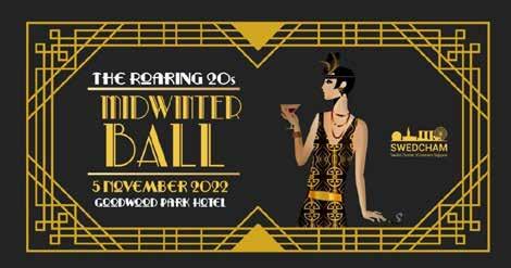 Only few remaining tickets were left at time of print for joining the Swedish Chamber of Commerce in Singa pore (SwedCham Singapore) at the annual Midwinter Ball on 16 No vember 2022 from 7:00 pm – 01:00 am.