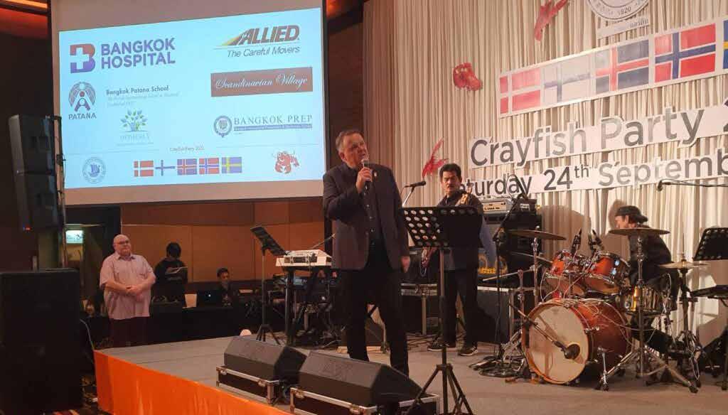 The Crayfish Party of the Thai Nordic As sociation took place on Saturday night 24 September 2022. The Ballroom of Landmark Hotel, Bangkok, was full to the brim with 200 happy partygoers. The party had been sold out almost two weeks in advance and the expectations were fully met.