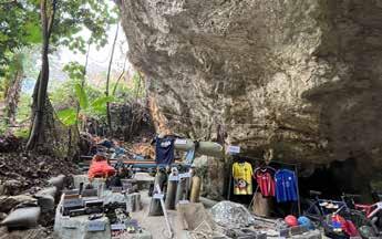 At the cave’s entrance, there is an exhibition about the rescue mission consisting of actual tools used in the operation and belongings of the twelve teen football players and their coach, a diagram of the cave, and a summary of the incident.