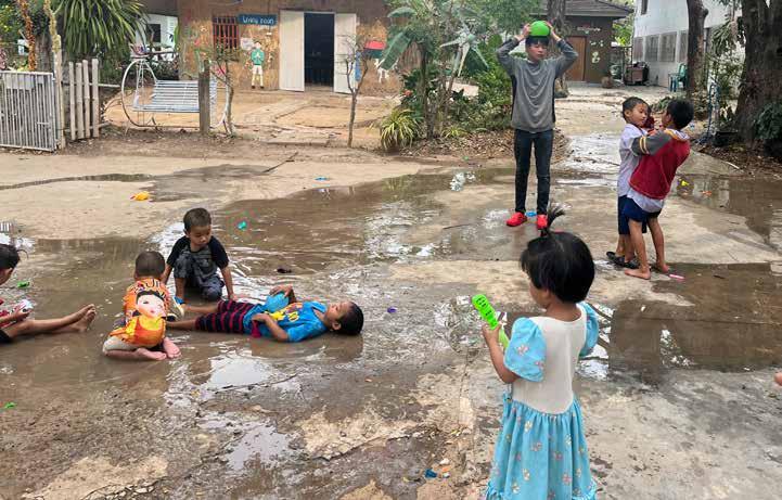 Suddenly, a child turned on the water hose, and started a balloon-water fight. Kids were jumping around the puddle of water that quickly formed. Filling their balloons with water and throwing them around. Smiling. Laughing. Enjoying themselves, while Steen, his family and Suriya Somjai observed them from the sideline. All with a blissful smile on their face.