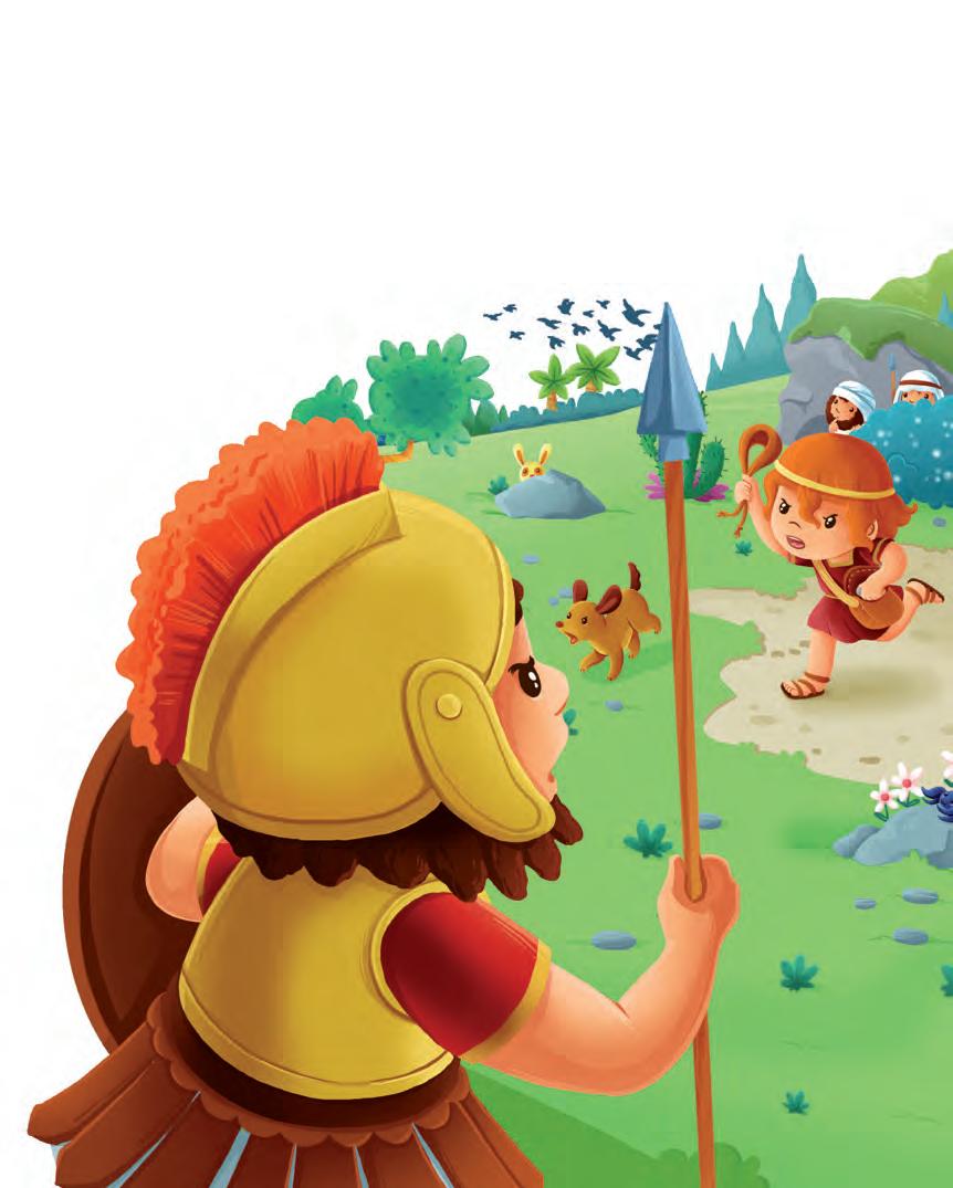 Goliath was a big, mean soldier with a pointy sword and a long spear. David was small and only had a slingshot. David faced Goliath and with God’s help, David won.