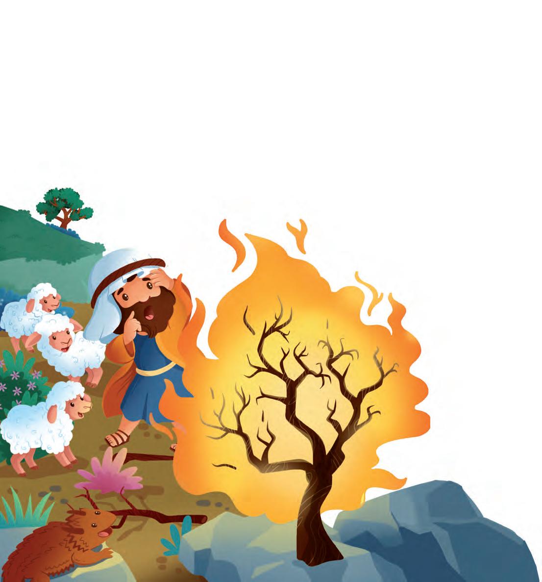 When Moses was watching his sheep, he saw a burning bush and heard God speaking from it. God had an important job for Moses.