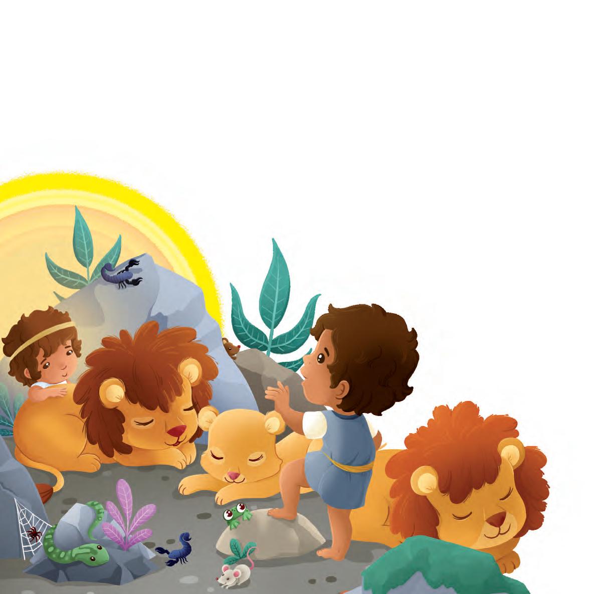 Daniel was in the lions’ den with many scary animals. God sent an angel to guard him and keep him safe.