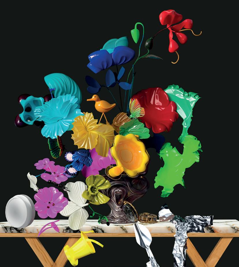 In this exhibition, Claudia Larcher presents a fascinating reinterpretation of the still life tradition, inspired by the Dutch painter Rachel Ruysch (1664-1750). Ruysch, one of the most important still life painters of the Dutch Golden Age, was known for her detailed, vibrant flower arrangements, staging nature as both magnificent and ephemeral. Claudia Larcher draws on this tradition and brings it into the digital age. Her works are not images of nature, but its digital echo: blossoms made of plastic, glass and pixels. A particular highlight of the exhibition is its interactive component: with the help of the augmented reality app Artivive, visitors can discover the ‘original’ source image by Rachel Ruysch in the digital compositions and experience first-hand the dialogue between Baroque painting and digital art for themselves.