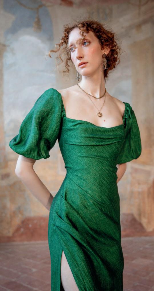 dress is made of 85% linen and 15% polyamide and comes with a very wide, square neckline inspired by the Renaissance period. £732. www.lenahoschek.com