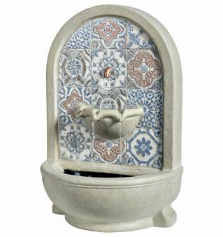 With a Morroccan-inspired tile design in soothing shades of terracotta and Mediterranean blue, the Souk Wall Mounted Water Feature will bring a relaxing touch to your garden. £255. www.coxandcox.co.uk