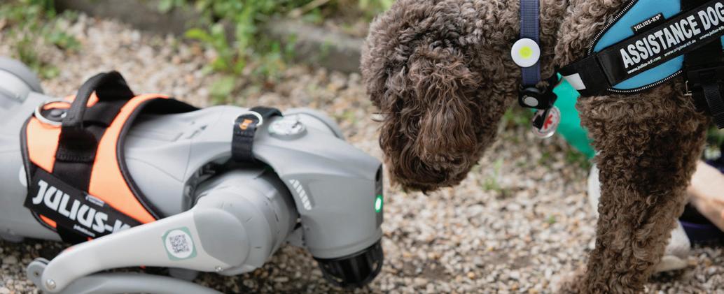 The development team at Julius-K9® couldn’t resist and designed a harness for the Unitree GO-2 robot dog, which proved to be helpful in navigating during the tests. Following this, we attempted to compare something that truly cannot be compared: a real, flesh-and-blood service dog and the robot dog were deployed in a special situation where the owner has been missing both arms since birth. Bori must cope with this disability while living in perfect harmony in city life with her service dog, Líra.