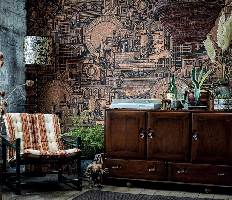 Did you know that you can adorn your interior walls with cork? This wallpaper is the result of a collaboration with graphic artist Drew Millward, best known for designing psychedelic posters for rock bands. Printed onto sustainable Portuguese cork, 'Hit The North' is an innovative juxtaposition of graphic art with a natural material, and as such it has been awarded the prestigious Design Guild Mark for 2020/2021. £192/m. www.themonkeypuzzletree.com