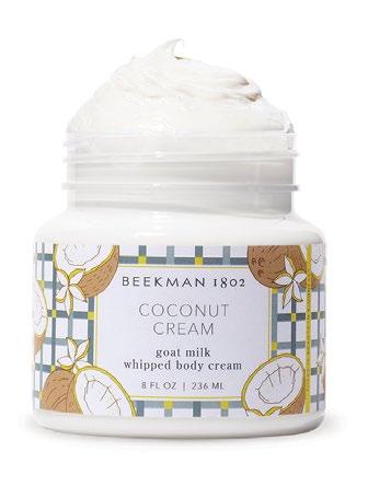 Luxurious goat milk body cream in sweet notes of coconut milk and vanilla blossoms.