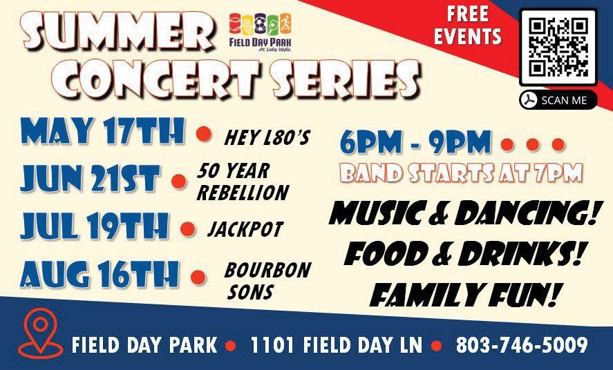 Field Day Park in Lake Wylie has announced its Summer Concert Series for 2024.