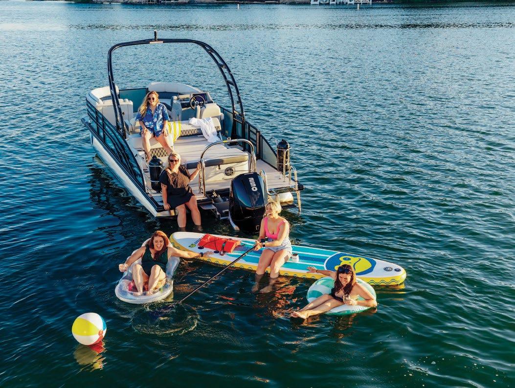 Look on the app and you’ll see Sweetwater Pontoon, for instance, which can hold up to 10 passengers. Tubes, wakeboards, banana boats, kneeboards, children training skis, water skis, floating lounge mats – even tow ropes – are available to rent with the boat. And you can also request a captain to motor your skiff while you enjoy the water.