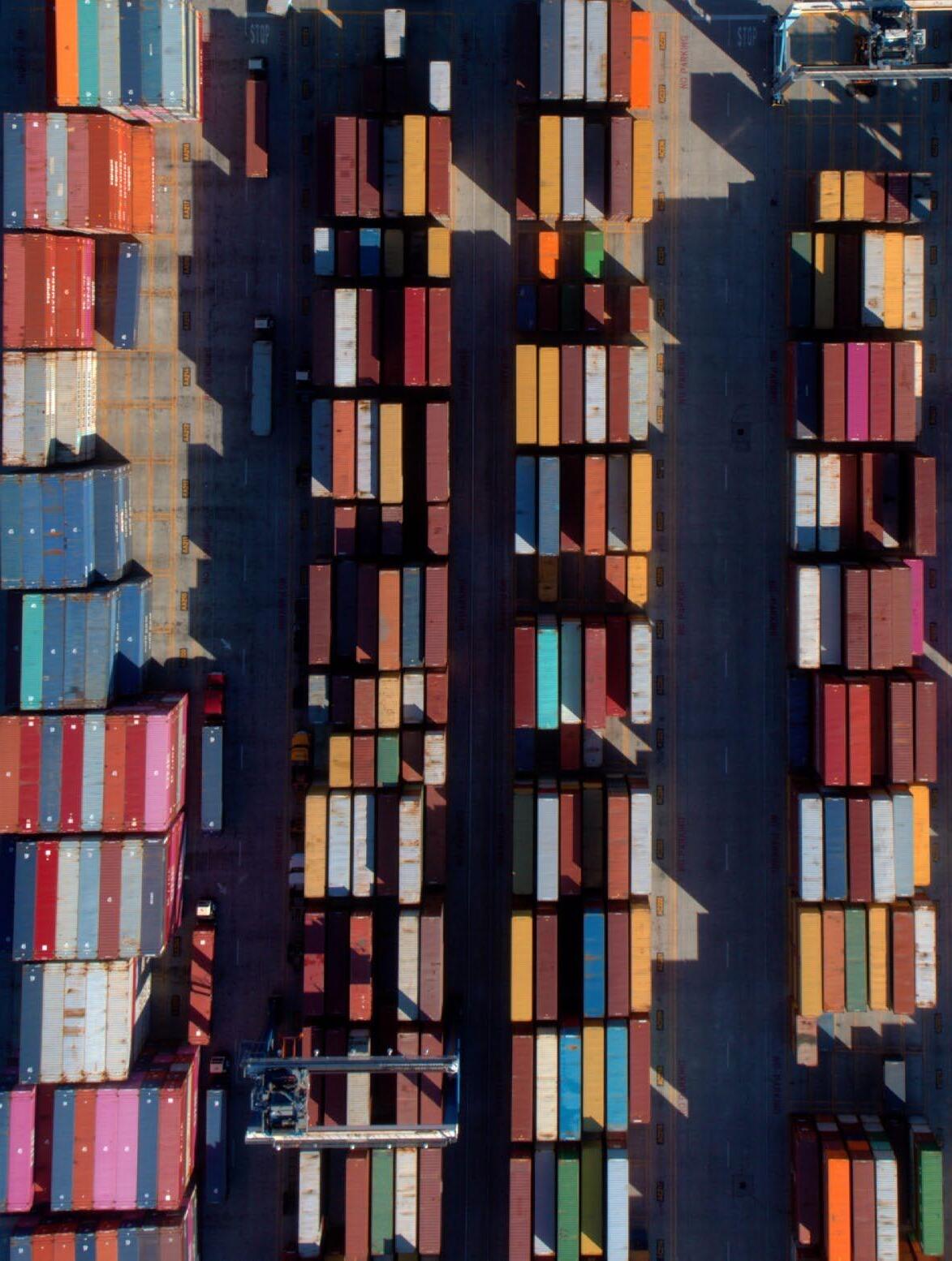 Thousands of brightly colored containers fill my view. Each one filled with goods — lumber, tires, automotive parts, paper, furniture, shoes, clothing, toys, electronics, household appliances, manufacturing parts, medical supplies, medicines, fresh produce and frozen foods.