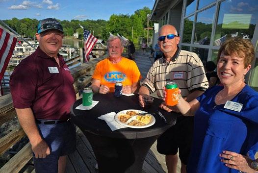 ron members Ray Williams and Lee Clementi grilled hot dogs on their boats to an enthusiastic group of fun-loving boaters.
