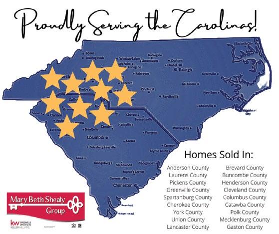 Mary Beth Shealy has a wealth of experience and a team to meet your real estate needs that form The Mary Beth Shealy Group at Keller Williams Greenville Upstate that covers from South Charlotte, NC all the way down interstate 85 to Anderson, SC. Mary Beth and her team are knowledgeable about the areas of Charlotte, Fort Mill, Lake Wylie, Rock Hill, Gaffney, Boiling Springs, Spartanburg, Greer, Greenville, Simpsonville, Powdersville, Easley, Clemson, Anderson & more. If you want a second home in the mountains, they cover to Asheville, Hendersonville, Brevard & more. Using cutting edge tools to provide better service for home buyers and sellers in both South and North Carolina.
