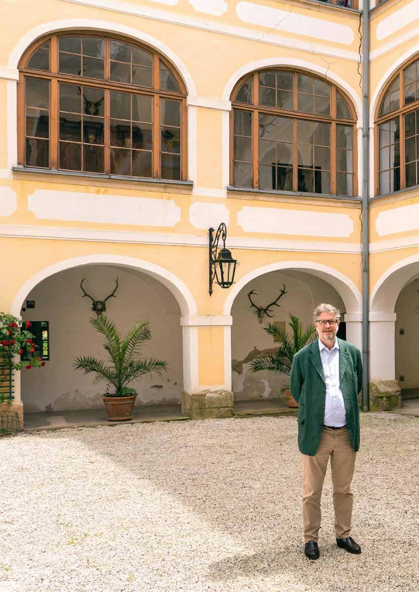 mutaufgaben stellen möchte. Also habe ich mich eben bereit erklärt. Ich dachte mir, ich werde mein Bestes geben, und wenn es schiefgehen sollte, habe ich jedenfalls alles versucht.“ Die SCHLOSSSEITEN-Leser:innen wissen, dass ein Haus wie Schloss Goldegg kein einfaches Erbe darstellt. Allein die Verwaltung des Gebäudes ist eine schier endlose Aufgabe. Wenn gerade ein Teil vom Dach erneuert wurde, geht es direkt mit dem Keller weiter. Ein Schloss ist in der Regel für den Erhalt kommender Generationen konzipiert, ebenso wie die Ländereien und die Forstwirtschaft, die dranhängen.