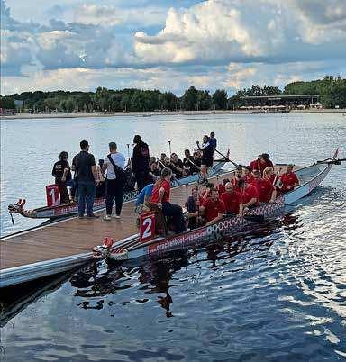 Der Wolfsburger Handwerks-Cup im DrachenbootkombinierteeinSommer-bzw. Familienfest für das Wolfsburger Handwerk mit einem sportlichen Wettbewerb im Drachenboot. Insgesamt haben sich neun Teams spannenden Rennen über 200 Meter auf dem Allersee gestellt. Den zweiten Platz belegte das Team „Elektro Selent Trupp“unddendrittenPlatzdasgemischte Team der Betriebe Horst Hüller und Haltern und Kaufmann. Ergänzt wurde das Event um ein Kinderprogramm mit Hüpfburg, Kinderschminken und einem Informationsstand zu Familienerlebnissen von WolfsburgerlebenundeinemGewinnspiel. „DieHandwerkskammerhatdenWolfsbur-