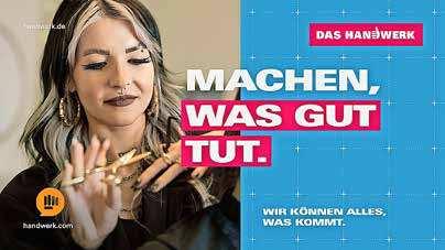 HandwerkerkönnendieHerausforderungen der Zukunft meistern – egal, was kommt. DieHandwerkskampagneläuftbereitsseit 2010unterwechselndenLeitmotiven.Hinter ihr steht der Zentralverband des Deutschen HandwerksgemeinsammitdenHandwerkskammern und -verbänden. Jährlich wird sie in mehreren Phasen umgesetzt. (IZ) W