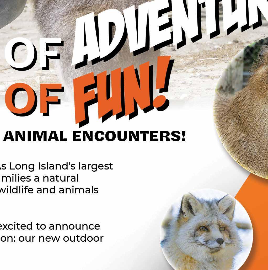 Just 15 minutes outside Binghamton, New York, Animal Adventure Park & Preserve offers a hands-on, family-friendly experience that goes beyond your typical day at the zoo. At the Walk-Thru Zoo, guests can meet, feed, and interact with more than 100 species in an accessible, stroller- and wheelchairfriendly environment. For even more animal encounters, cross the street to The Preserve, a drive-thru safari where hundreds of animals roam 100+ wooded acres—including Tank the White Rhino and a second giraffe viewing deck. Every Animal Adventure ticket includes a coupon for discounted admission to The Preserve.