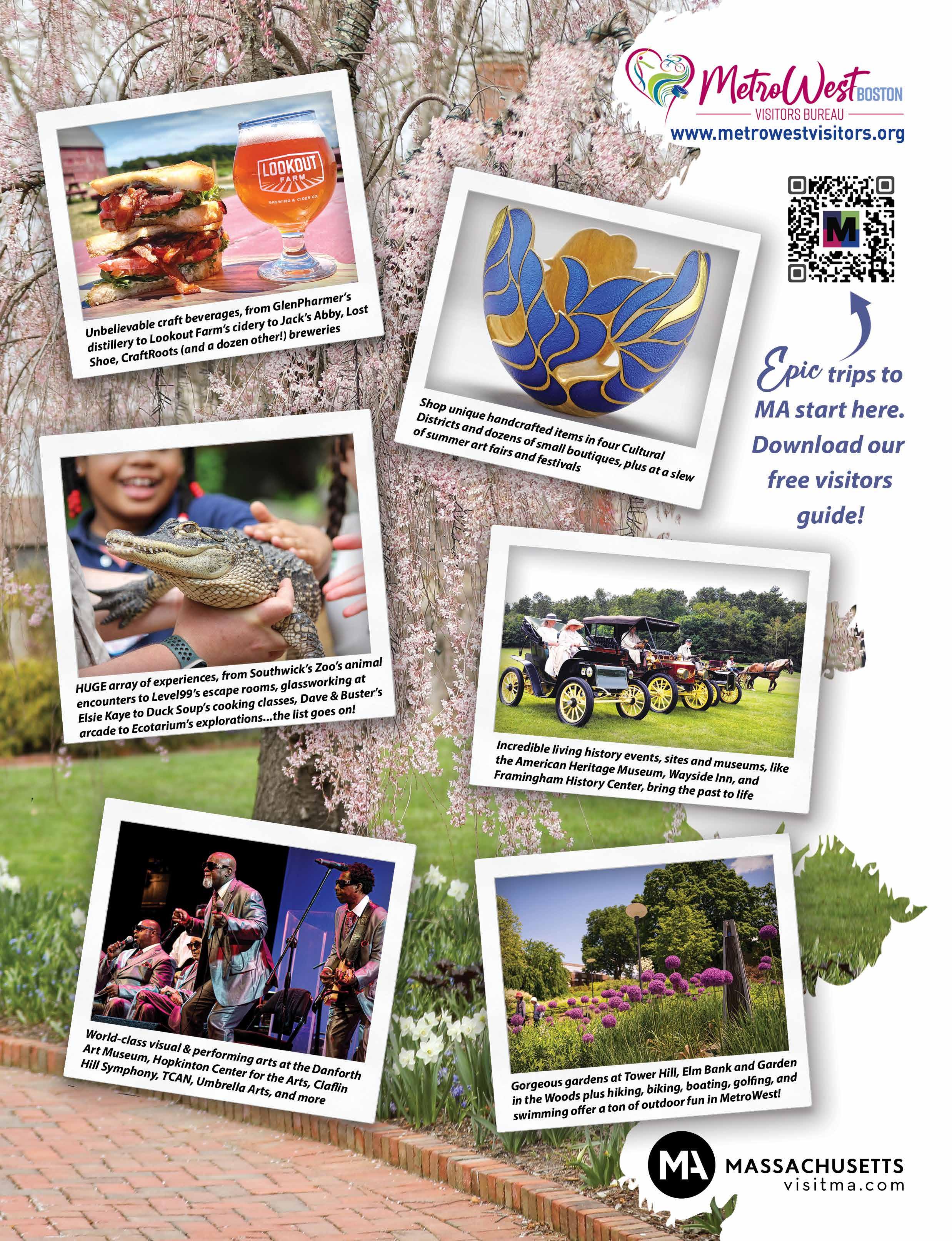 Download the free visitors guide for more attractions, restaurants, hotels, and more to plan your adventure. Visit metrowestvisitors.org.
