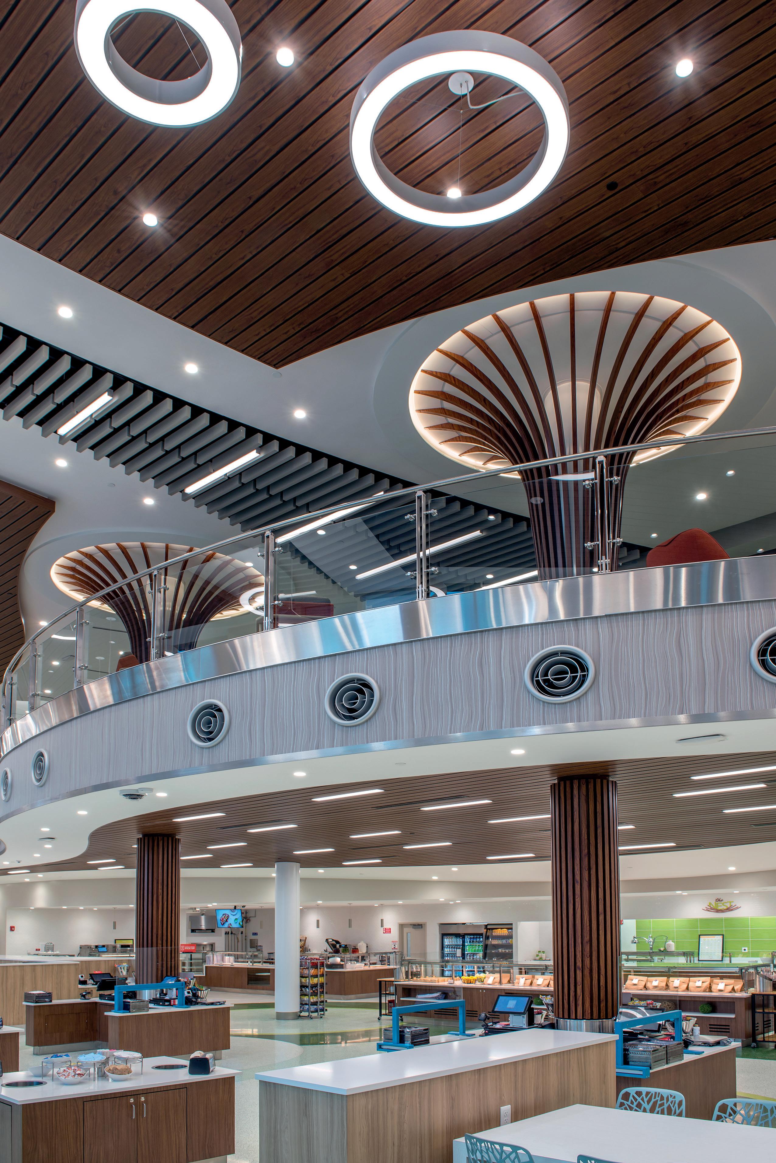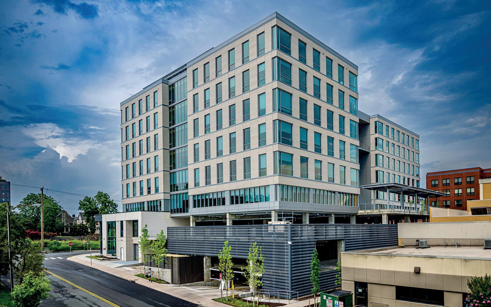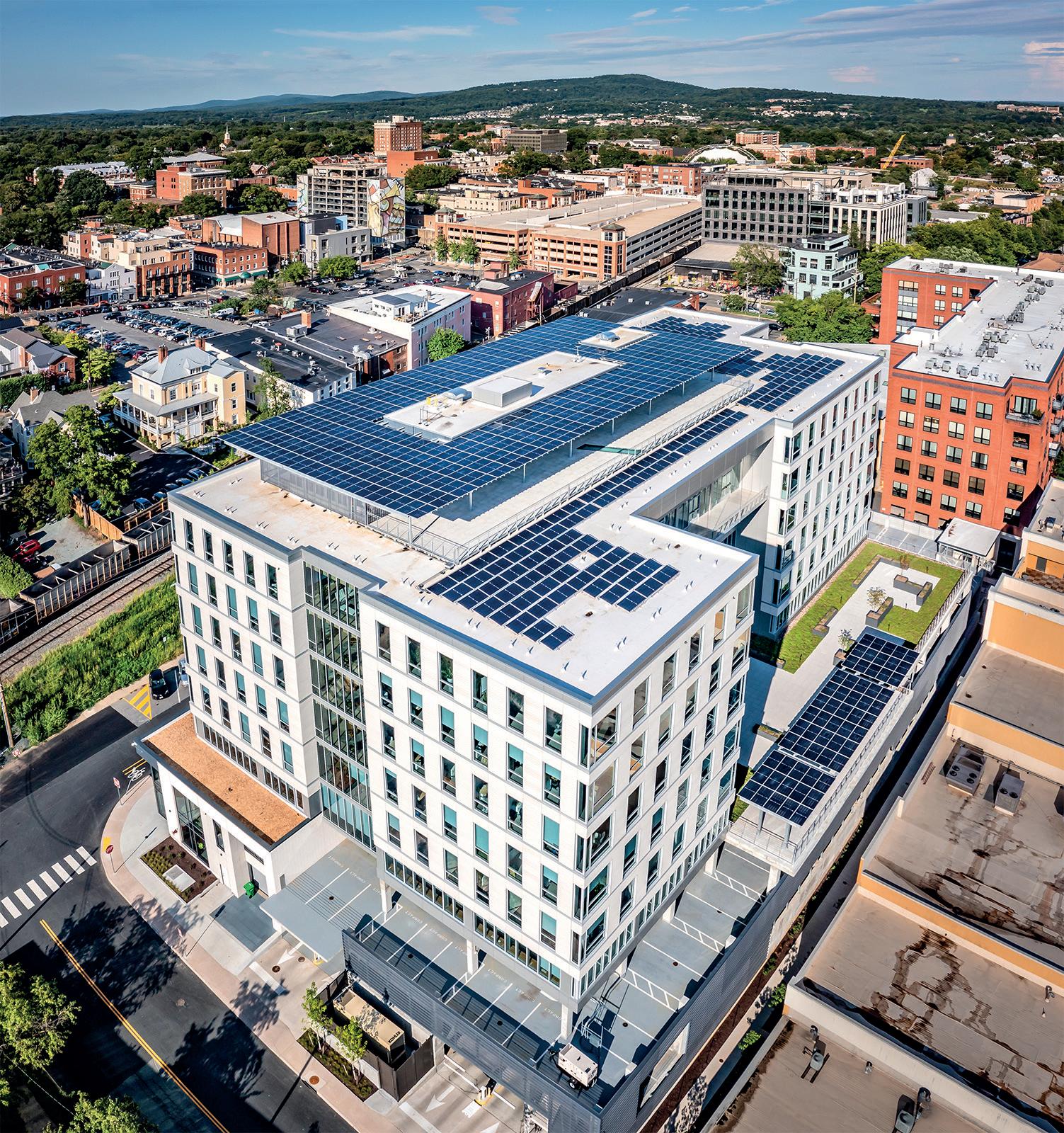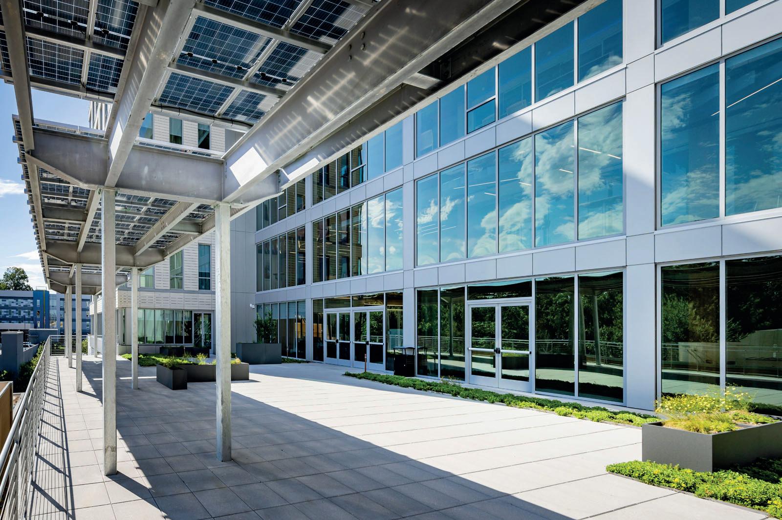 “This cradle-to-cradle philosophy limits or eliminates the use of harmful materials and ensures that materials are fully recyclable and have life after their initial intended use,” he notes. “In fact, just one dumpster of recyclable timber waste was needed for the entire construction project. Structural wood from fast-growth timber is one of the many sustainable features of Apex Plaza; much like a healthy tree stores carbon dioxide, one square meter of cross-laminated timber can remove around one ton of greenhouse gas from the atmosphere. Additionally, the building’s 875 solar panels are designed to produce over 50 percent of the energy the lead tenant, Apex Clean Energy, consumes in any given year.”