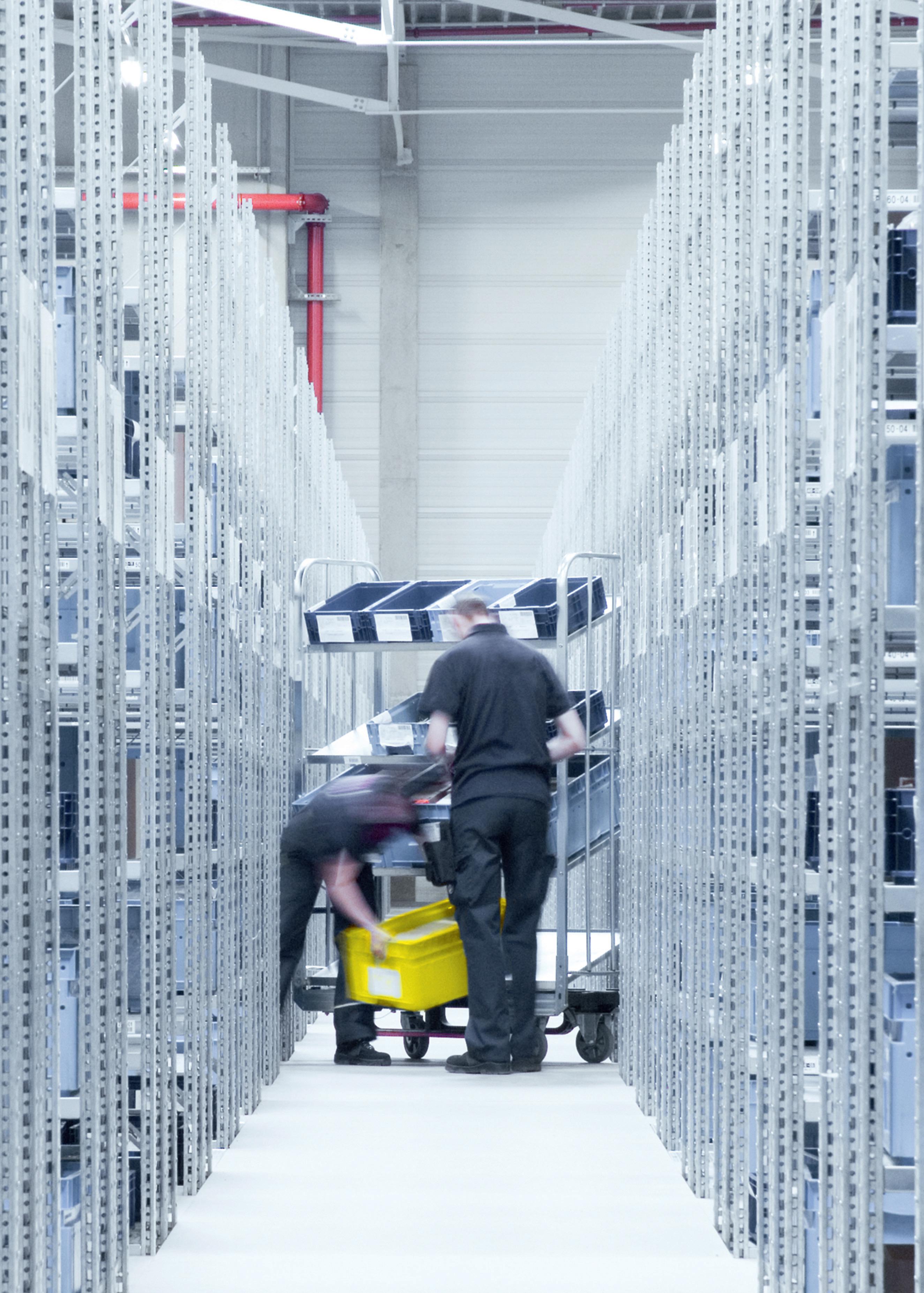 From bins and shelving to optimized mobile storage. From manual order picking to fully automated systems. All our products are modularly expandable, even to multiple floors. Our range includes the most diverse racking systems, which are fully tailored to your needs. Our experts have extensive experience in various industries. Make an appointment and discuss the possibilities for your warehouse equipment.