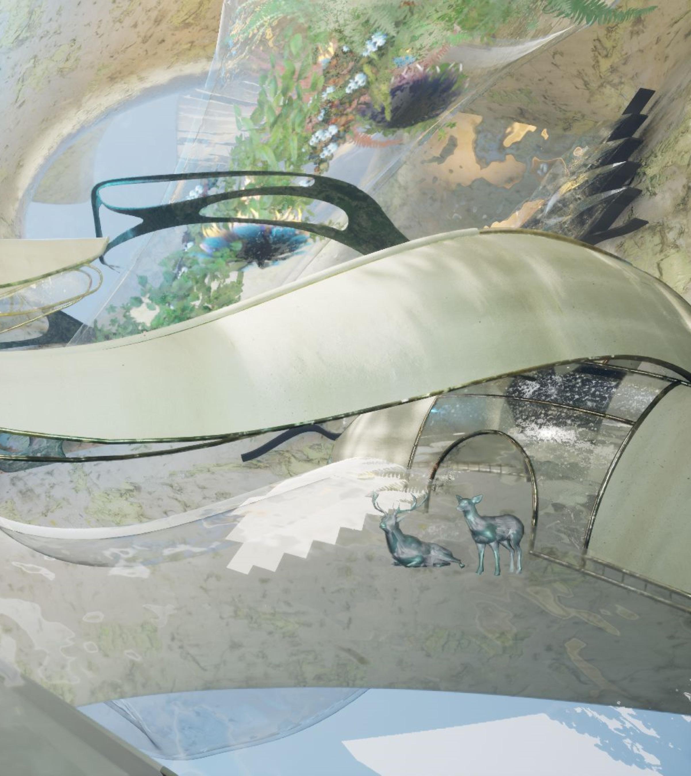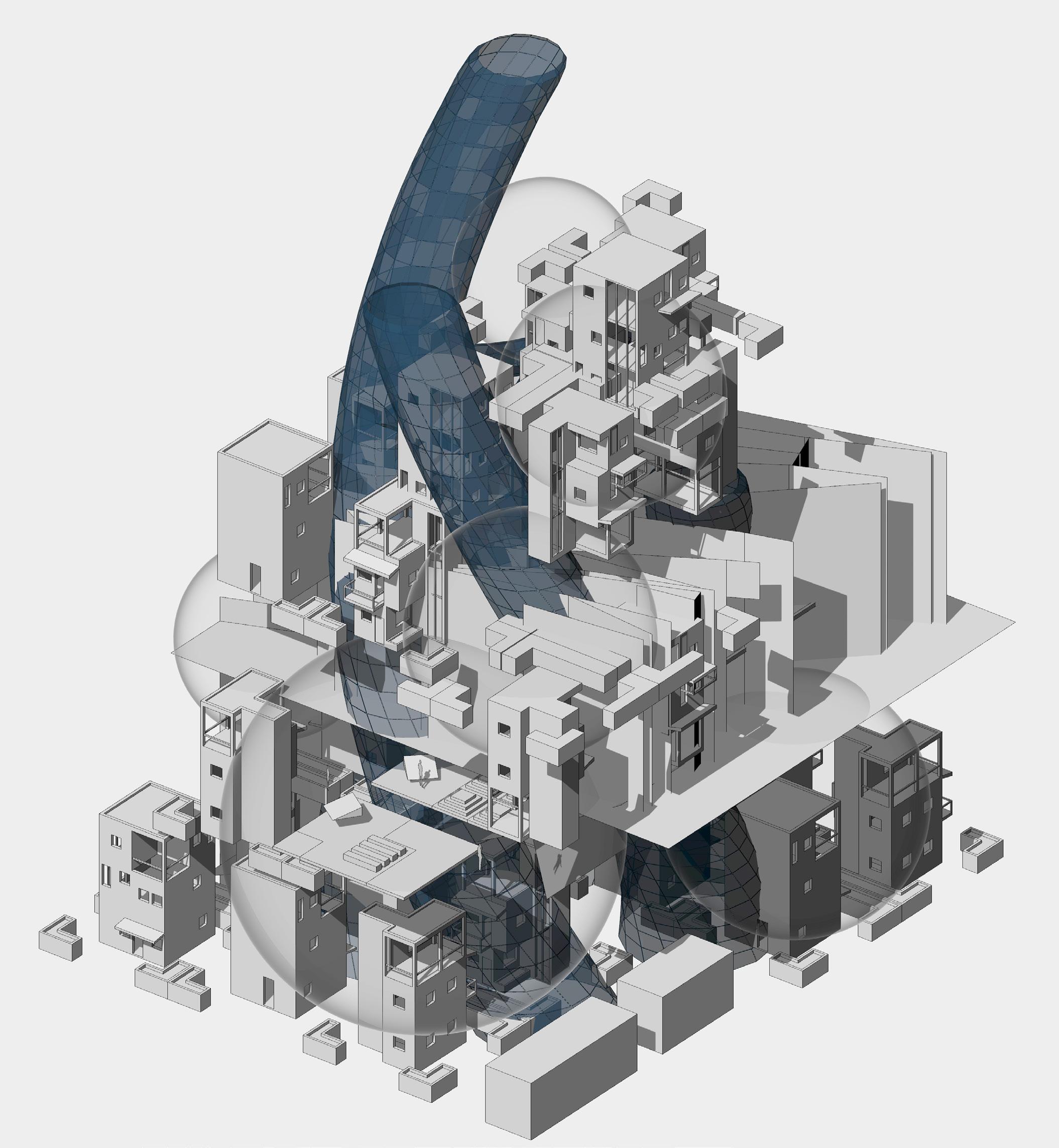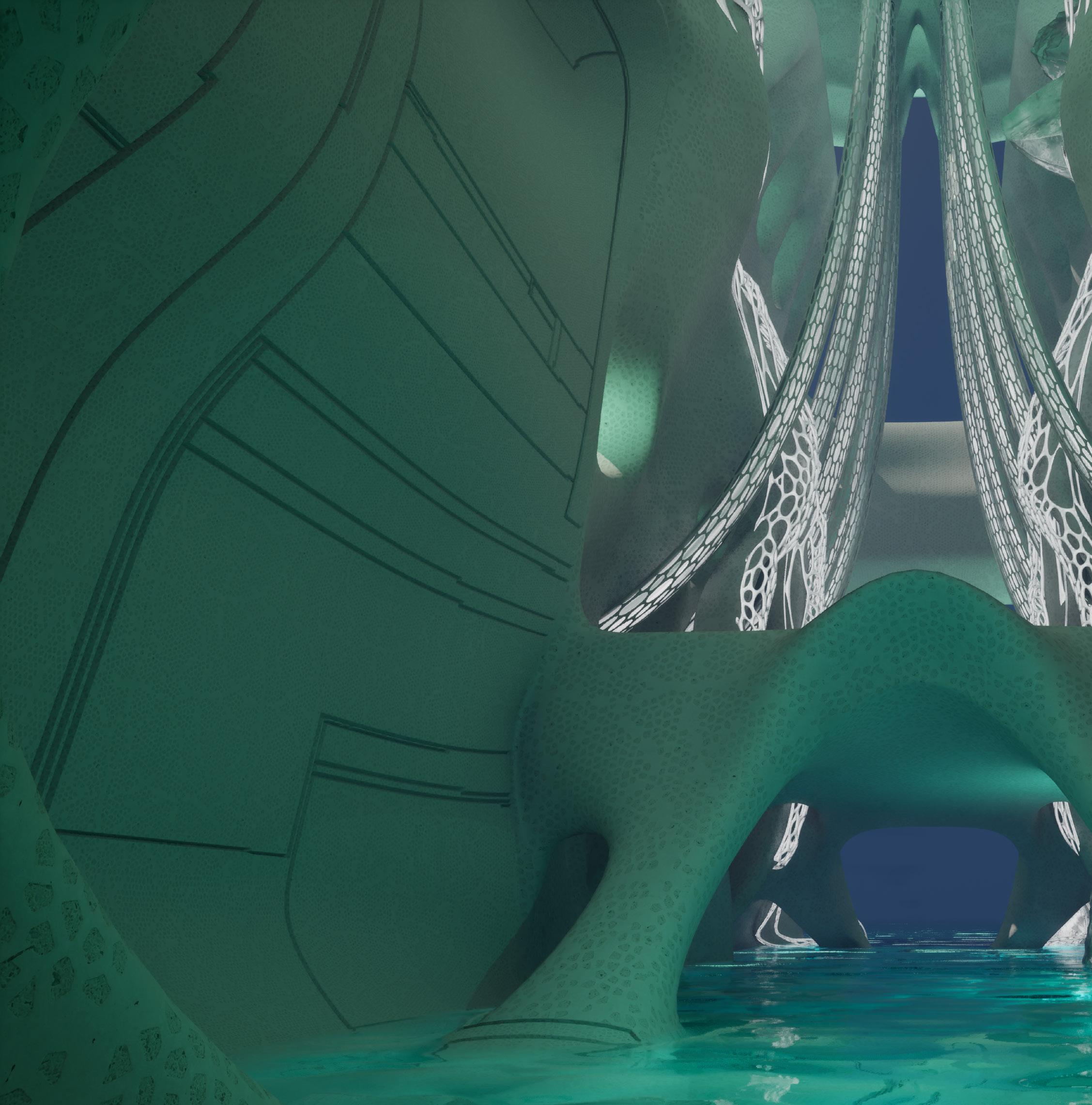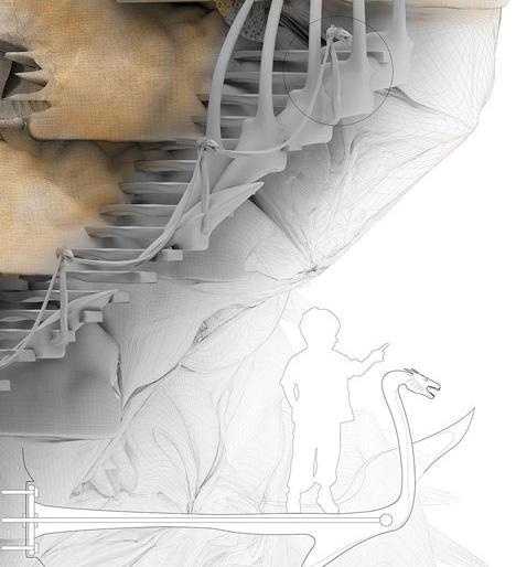 Our monster represents our hopes for the retrieval of the lost qualities of our culture. Mythologies of monsters have long been a part of human history. Humans manifest and give life to these mystical creatures to better understand the incomprehensible of our society. Within our project narrative, we aim to address the effects of today’s social media and digital information explosion through the story telling of our protagonist Sophie who finds meaning in her life through a magical adventure within the body of Kun, the Deity of Recollection. The high pace of this era makes individuals feel insignificant and isolated as we hardly know the people living next door to us. To adapt to this new age, we made sacrifices that detach ourselves from our traditions, emotions, nature, creativity, and our friends, making ourselves numb to the environment around us and lost in the purpose of life. By manifesting a unique form of architecture - a monster that harbors these discarded qualities by society, we hope that by exploring our monster with Sophie, people can find meaning in life, pursue their dreams with freedom and creativity, reimagining the possibilities of urban life or simply living life in a more positive manner.