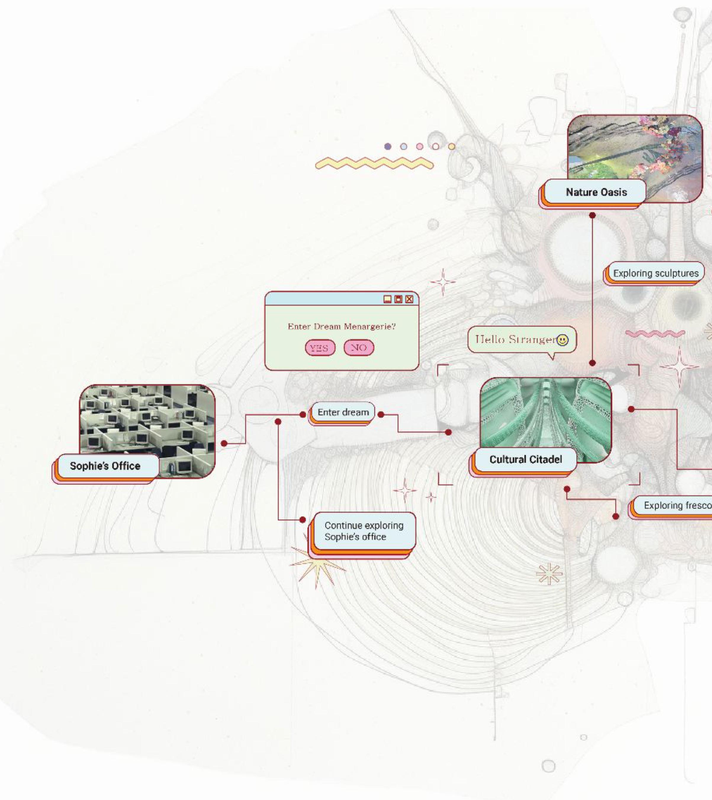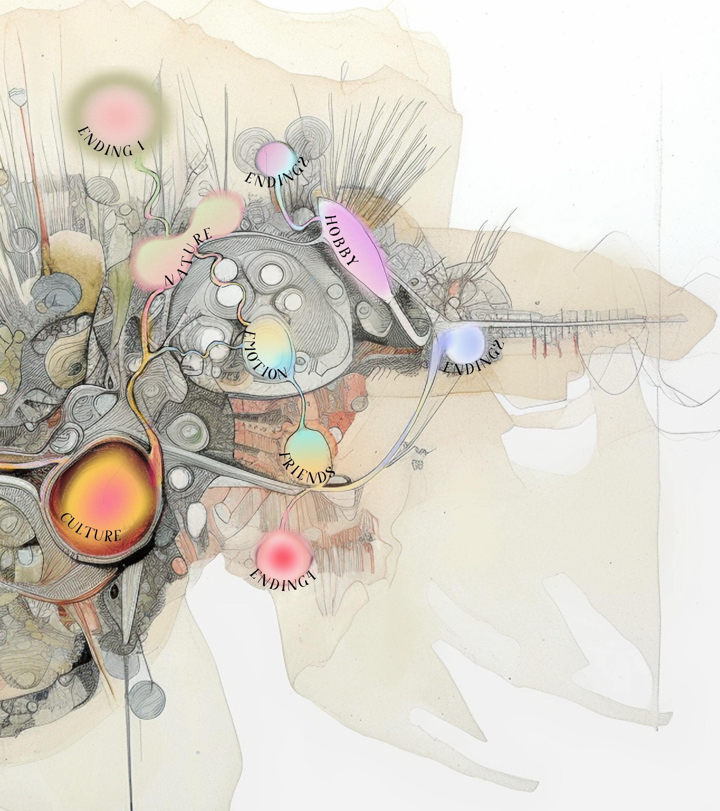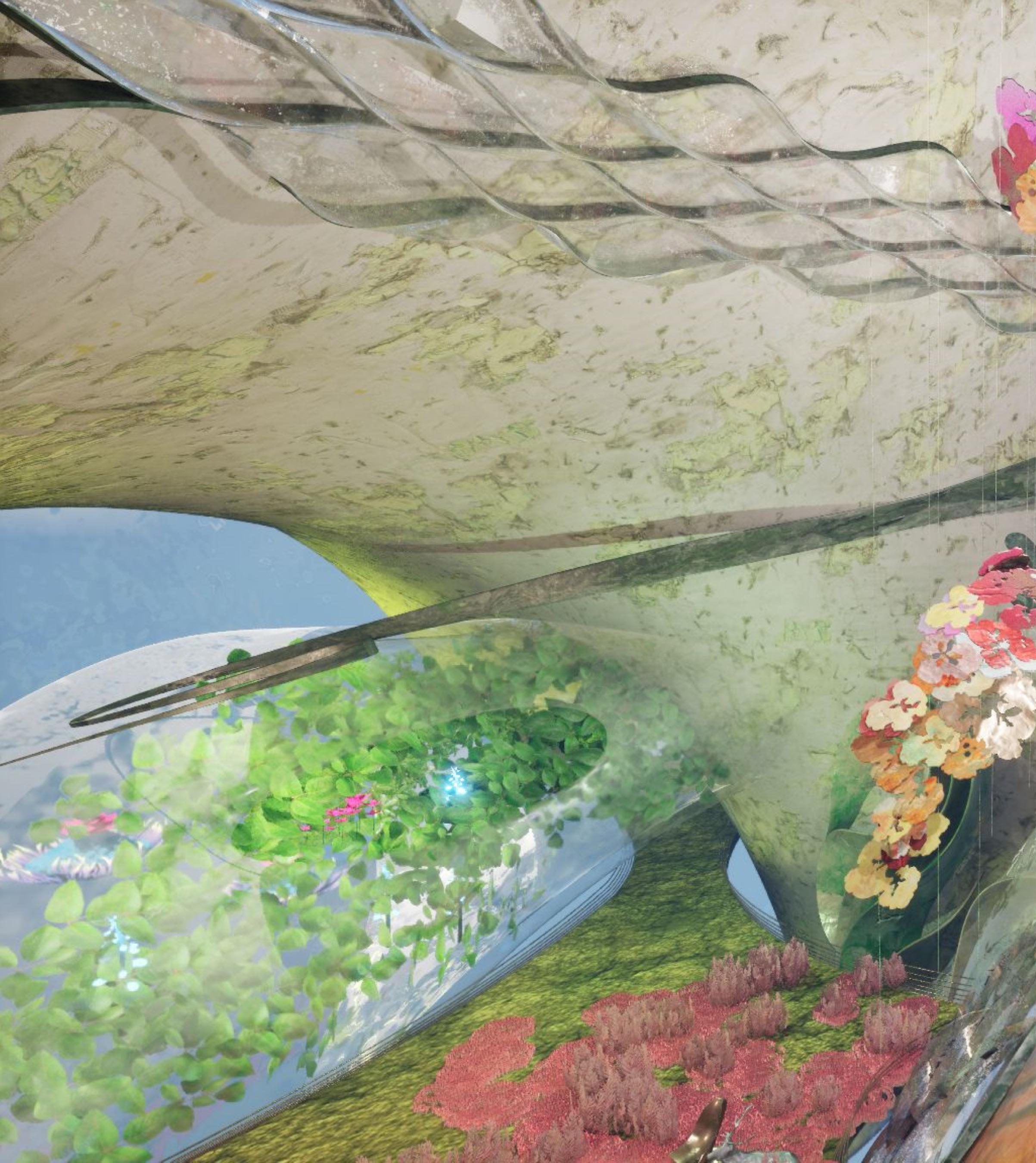 Our monster represents our hopes for the retrieval of the lost qualities of our culture. Mythologies of monsters have long been a part of human history. Humans manifest and give life to these mystical creatures to better understand the incomprehensible of our society. Within our project narrative, we aim to address the effects of today’s social media and digital information explosion through the story telling of our protagonist Sophie who finds meaning in her life through a magical adventure within the body of Kun, the Deity of Recollection. The high pace of this era makes individuals feel insignificant and isolated as we hardly know the people living next door to us. To adapt to this new age, we made sacrifices that detach ourselves from our traditions, emotions, nature, creativity, and our friends, making ourselves numb to the environment around us and lost in the purpose of life. By manifesting a unique form of architecture - a monster that harbors these discarded qualities by society, we hope that by exploring our monster with Sophie, people can find meaning in life, pursue their dreams with freedom and creativity, reimagining the possibilities of urban life or simply living life in a more positive manner.