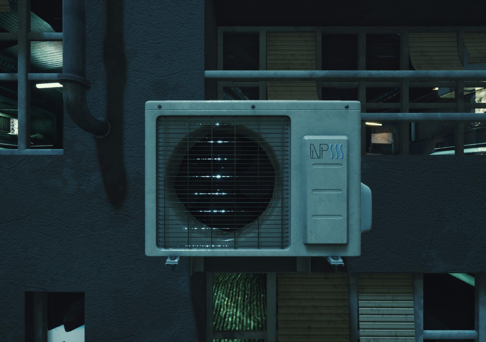 LEFT: The first scene that comes up, an air conditioner that never stops spinning