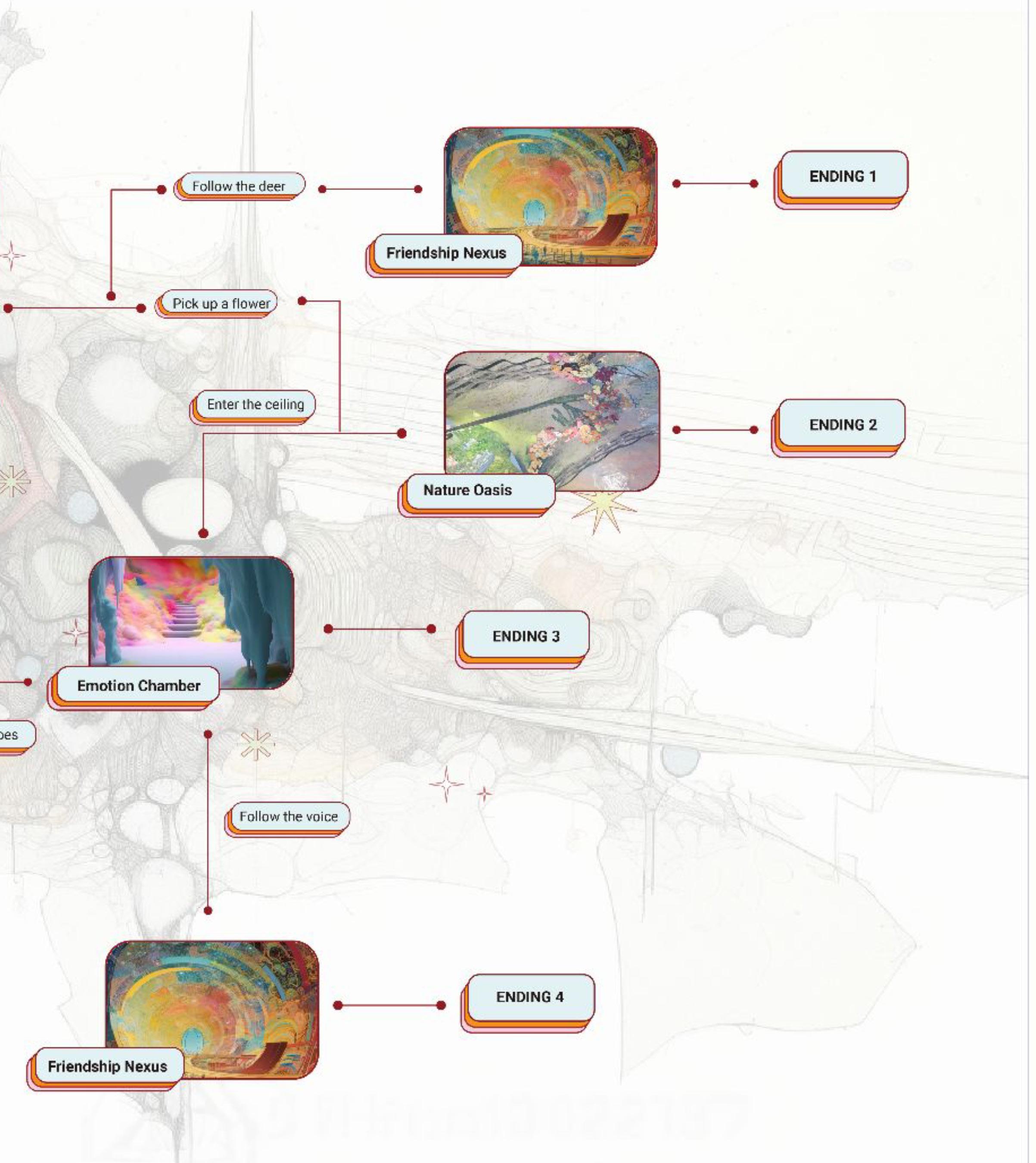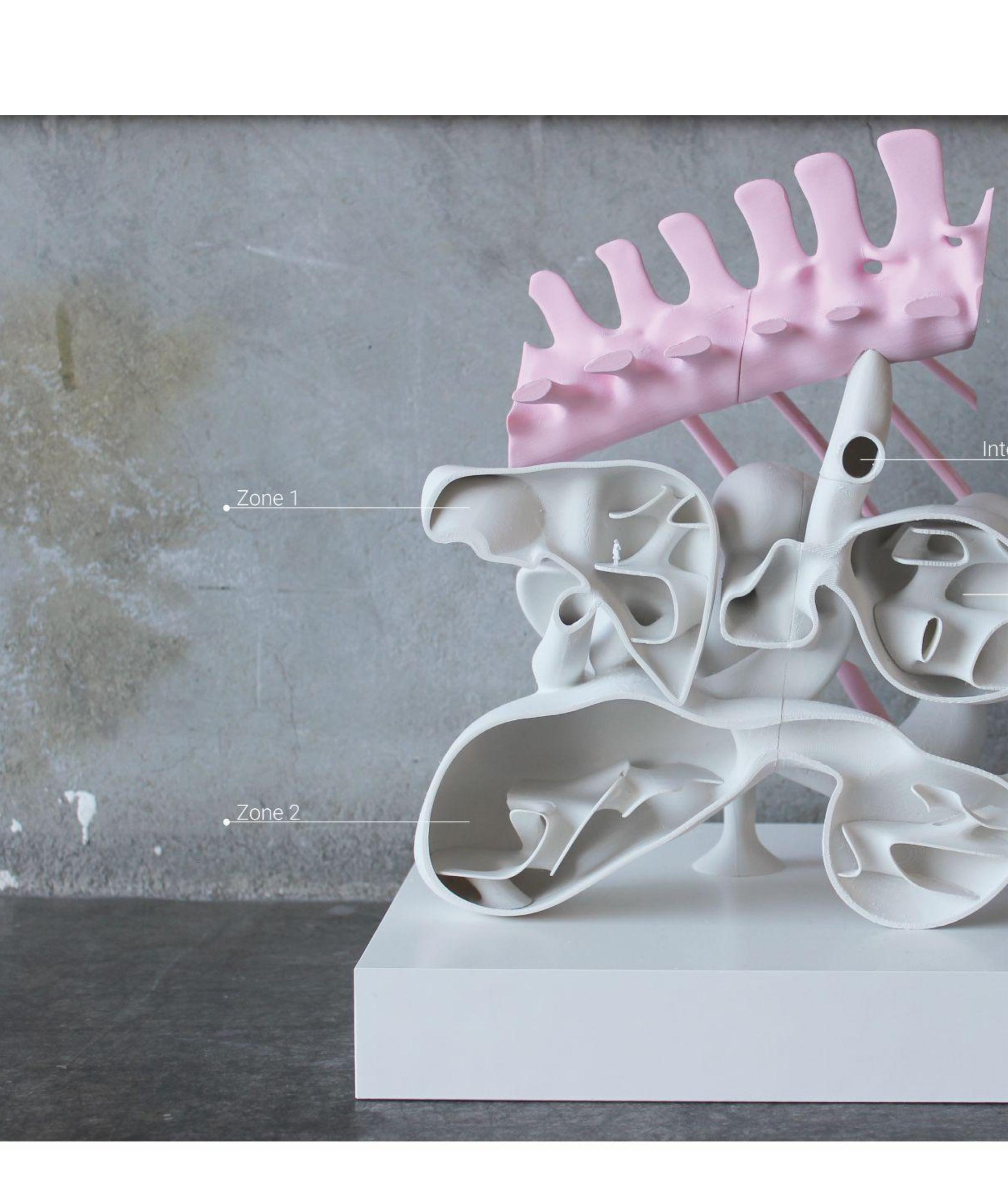 Our project works with 'Narrative Lego' in producing an interactive narrative film experience for the audience that does not fixate on one singular storyline but one that lets the audiences' decisions affect the plot, bringing a unique experience for each person as they explore different parts of the monster. In addition to an interactive film, we have also produced a physical model to showcase the full potential of this unique architectural form. We have designed and developed a model that allows people to explore different spaces within the monster's body. With this transmedia approach, each space will have its own unique story to tell, conveyed through shape, sound effects, and lighting.