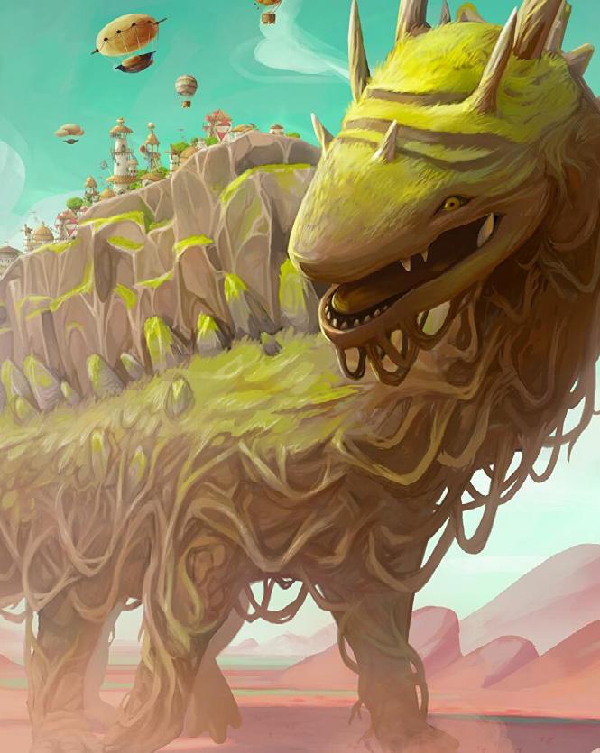 The Wandering Village is an upcoming game title developed and published by Stray Fawn Studio based in Zurich, Switzerland. The game released on September 14, 2022. In this game, the players meet Onbu, a huge creature that strides through the land. The creature's back is the only hope for the lost tribe to find a new place for their settlement after dangerous plants poisoned their land. Onbu now takes them on a journey away from the toxic spores, but the villagers of course also must care for Onbu.