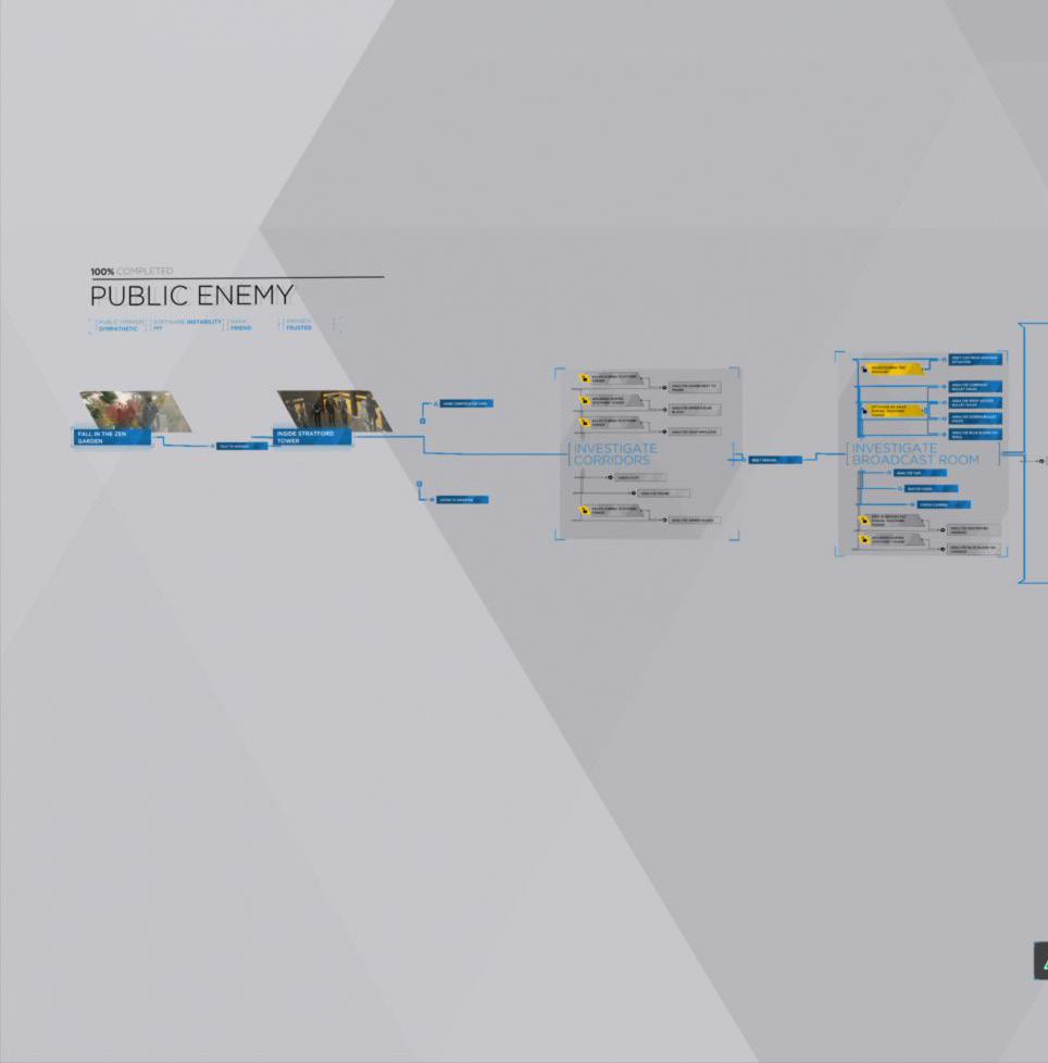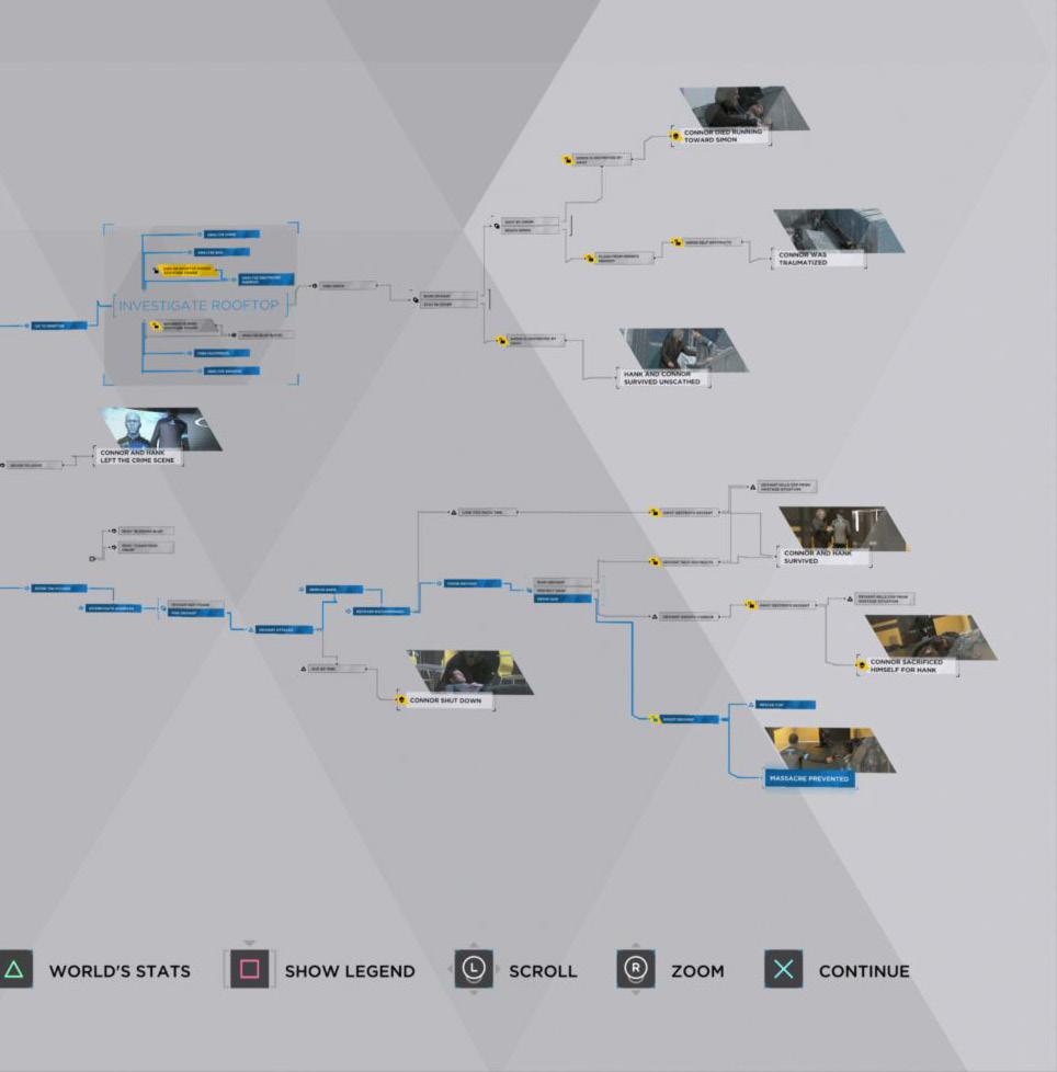 The gameplay follows three andriods. Connor spends his days hunting androids that have gone rogue or called deviants. Kara is a newly deviant android who escaped her owner and is trying to protect a young girl, and Markus is the leader of the deviants, helping other androids go free. The game forces the player to make many choices that will change the way the game plays out. Because of this, there are so many different endings, making the story unique for every player.