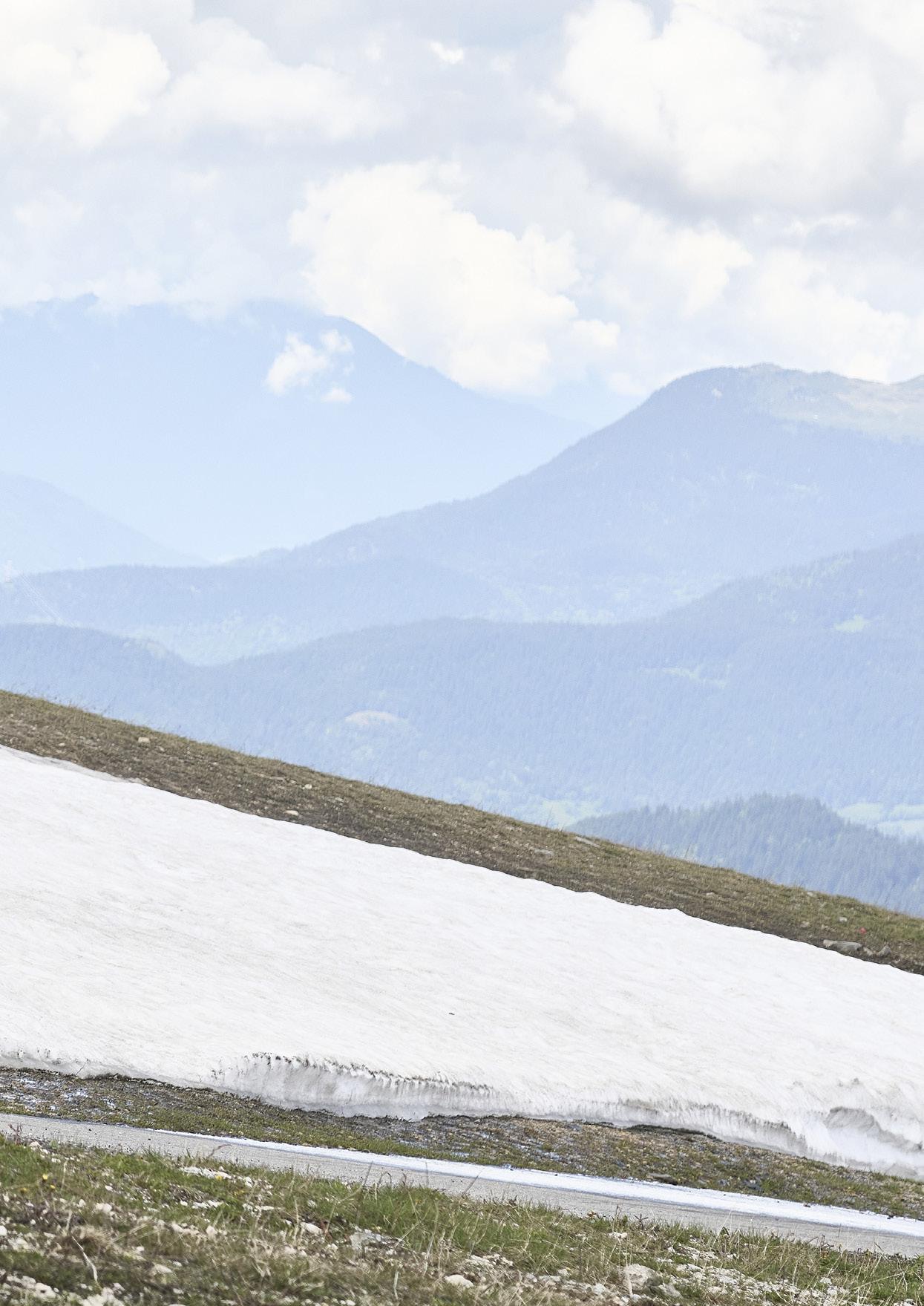 Col de la Loze i de franske alper. Alderspræsidenten på Cykelnerven 2023, Gunni Østergaard Pedersen på 74 år, nedlægger en sneklædt stigning i 2.304 meters højde. Til daglig arbejder han som skolelærer, og da han begyndte at cykle med, kendte han intet til sclerose. Det handlede kun om en stor lidenskab for cykling og de sagnomspundne etaper.